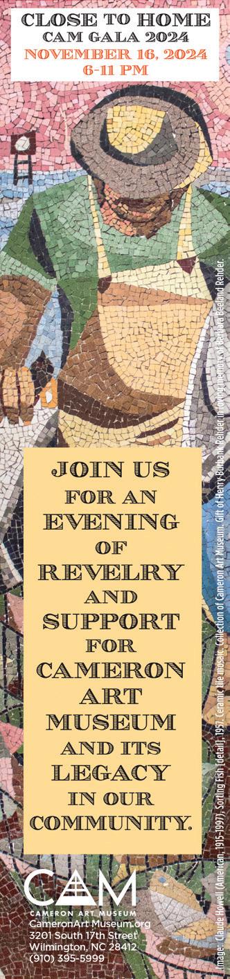 EMORY RAKESTRAW i s a North Carolina native who has extensively covered the people, places, and history of the Tar Heel State. She works in public relations representing clients in the interior design and wellness sphere throughout the Southeast. When not writing, she can be found at the beach. Rakestraw talked with Chelsea Lea, designer of this year’s WILMA awards bracelet, about her background in jewelry (page 94).