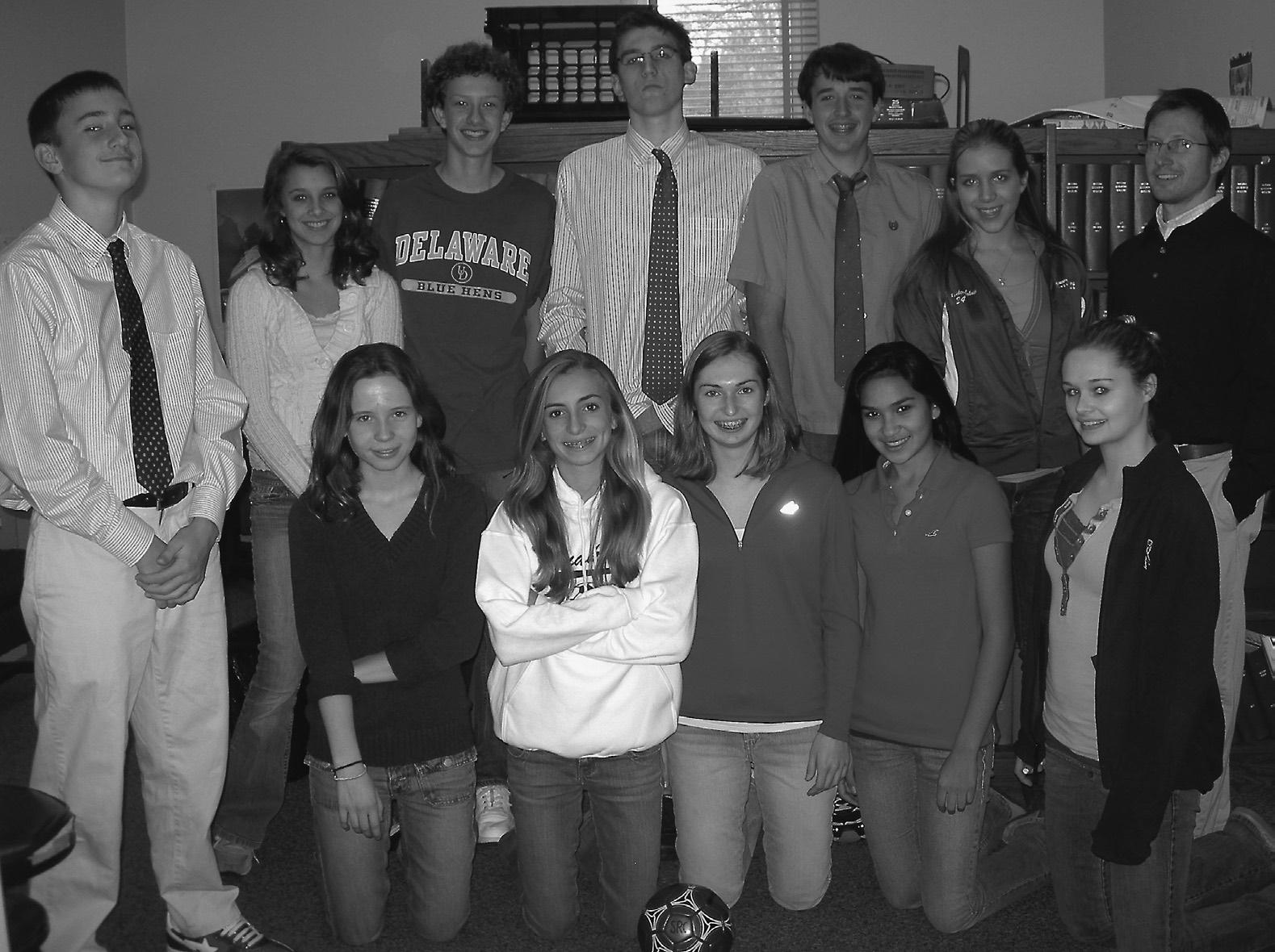 1st Row: Sarah Balick, Zach Cutler, Adrian Jenkins, Ethan Moser, Erica Rodi, Peter Willliams, Abby Sanchez. 2nd Row: Daniel Astin, Kayln Nix, Calista Lawrence, Emily Rossi, R.J. Fink, Hannah Kushner, Alicia Thompson. 3rd Row: Gabby Barnes, Mrs. Grossman, Jessica Homitz, Rachel Ramirez, Elizabeth O’Brien, Sarah Shaw, Sagar Maheshwari, Andrew Jaworski, Matt Denney, Mrs. Anderson, Alexandra Musi. 32 Students