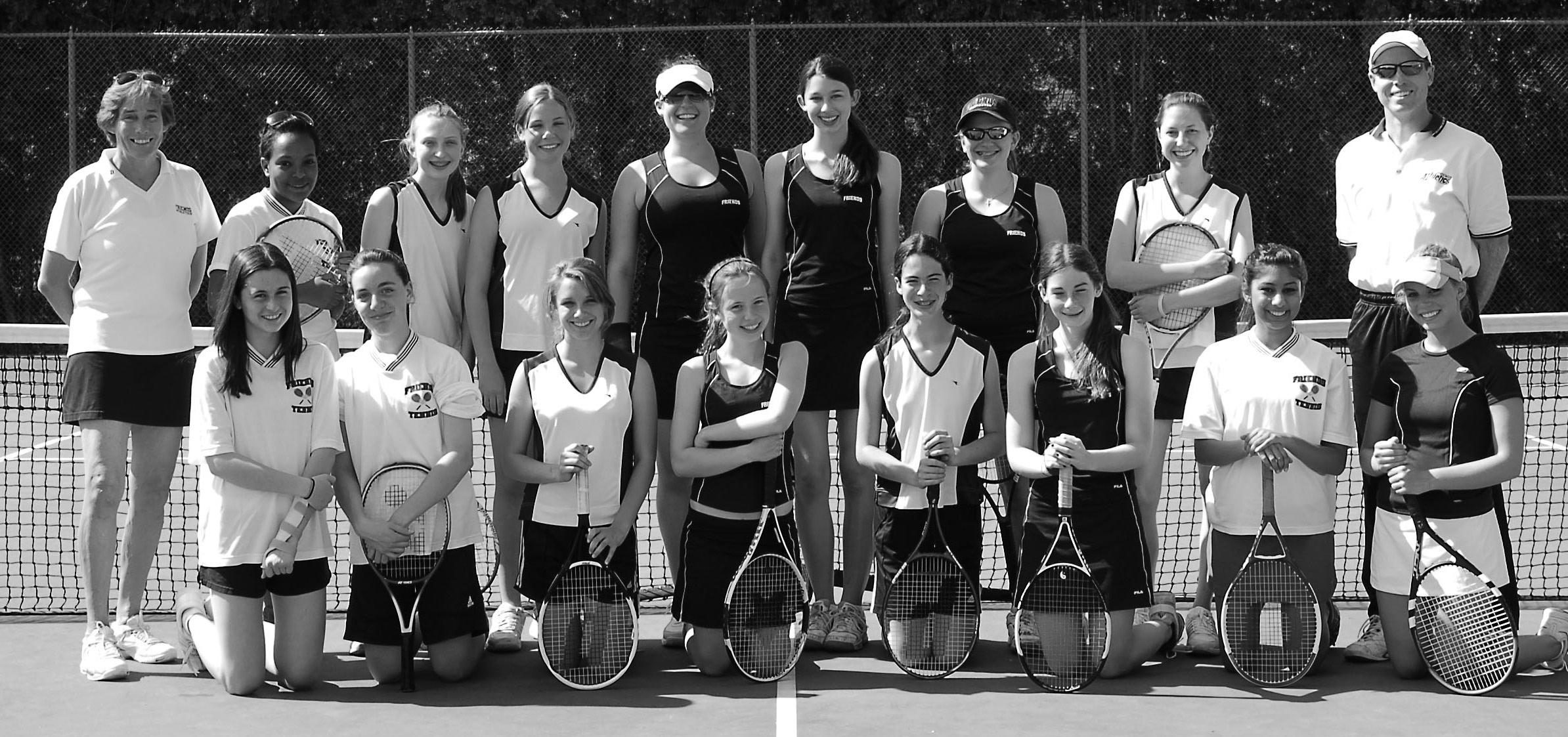 1st Row: Matt Schmittle (Ball Boy), Rebecca Marcus, Lindsay Schmittle (Captain), Monica Felder, Becky Jennings, Marlee Raber, Laura Shand, Mackenzie Snead, Elena Veale (Ball Girl). 2nd Row: Johanna Fors, Becky Hodge, Caroline Armstrong, Samantha Gagliano, Jessica Swain, Sarah Galinat, Jessica Venetianer, Mia Reynolds, Julia Horwitz. 3rd Row: Coach Rick Sheppard, Coach Renisha James, Olivia Veale, Emma Pohl, Chelsea Gunter (Captain), Kelsey Mellow, Keya Joshi, Amanda Reeder, Coach Mark Schmittle, Coach Nick Hovacker.