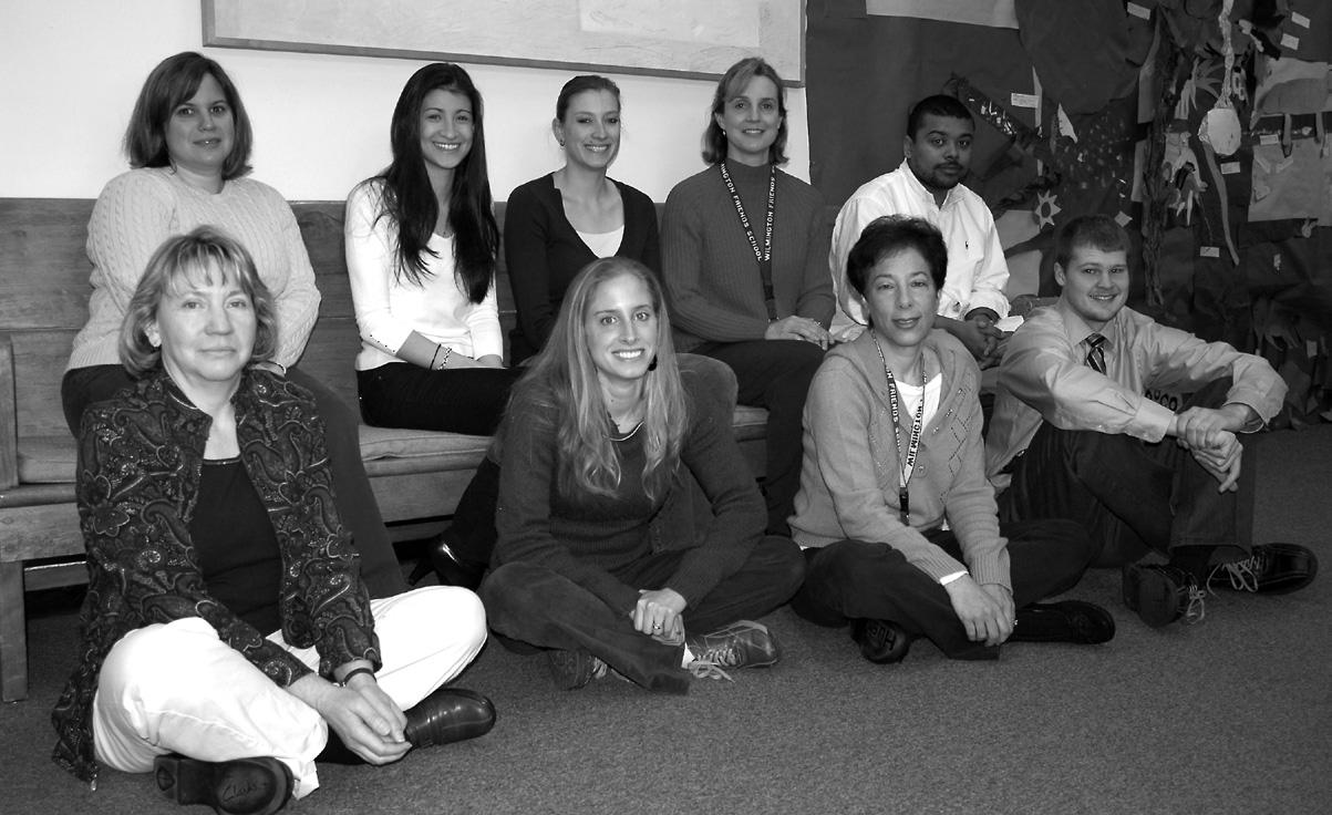 1st Row: Micheline McManus (English), Jessica Smith (Head of English Dept.), Rick Grier-Reynolds (Head of History/Social Science Dept.), Richard Bernard (Grade Clerk, Head of Religion Dept.). 2nd Row: Javier Ergueta (history), Jake Rashkind (English), Ildiko Miller (math).