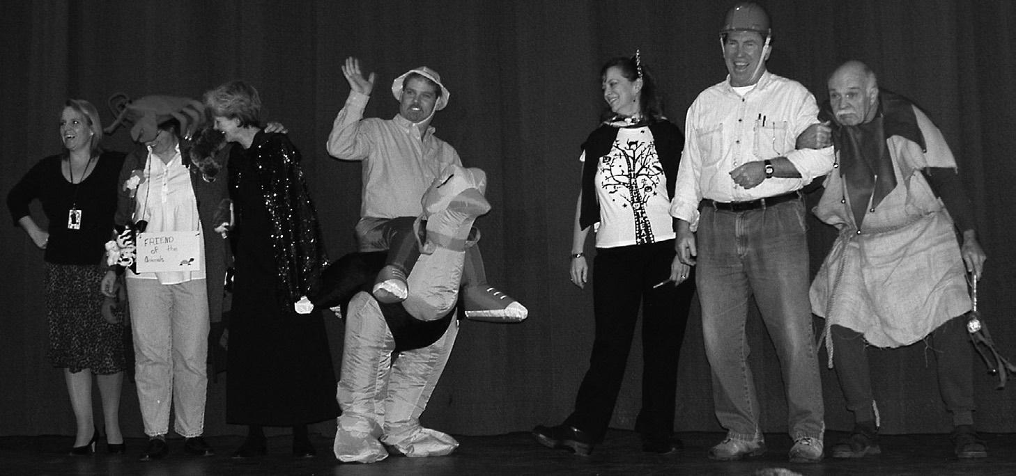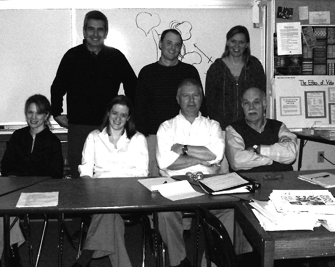 George Lacsny (physics), Mary Woodward (computers), Cynthia Mellow (visual arts), Kathleen Martin (college guidance), Margaret Anne Butterfield (Grade Clerk, performing arts), Steve Jennings (Head of Math Dept) (Missing: Ellen Johnson (Head of Science Dept.)).
