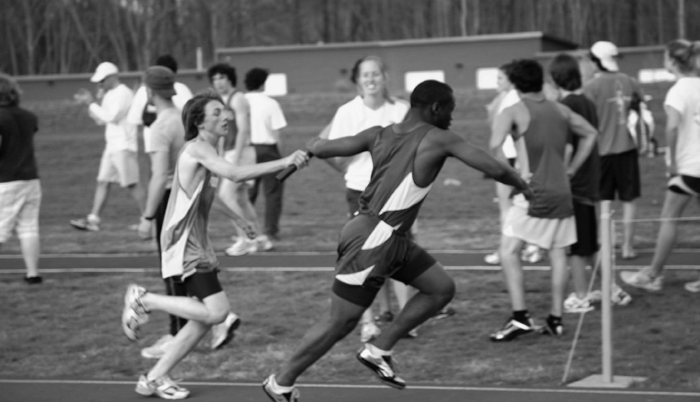 1st Row: Coach Joe Rescinito, Christina Chapman, Sabrina Lessner, Josh Zimmerman, Luke Raber, Kevin Anglim, Coach Leslie Knight. 2nd Row: Steven Hicks, Joe Geoghegan, John Taggart, Nathan West, Okechi Nwabara.