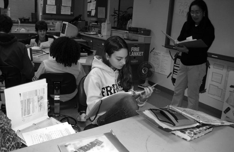 Paulo Machado (Visual Arts), Robin Lebauer (Mathematics), Stephanie Knudson (English), John Hanson (Social Studies/7th Grade Dean), Kate Thomas (US Librarian), Karen Horikawa (Associate Science Department Head)