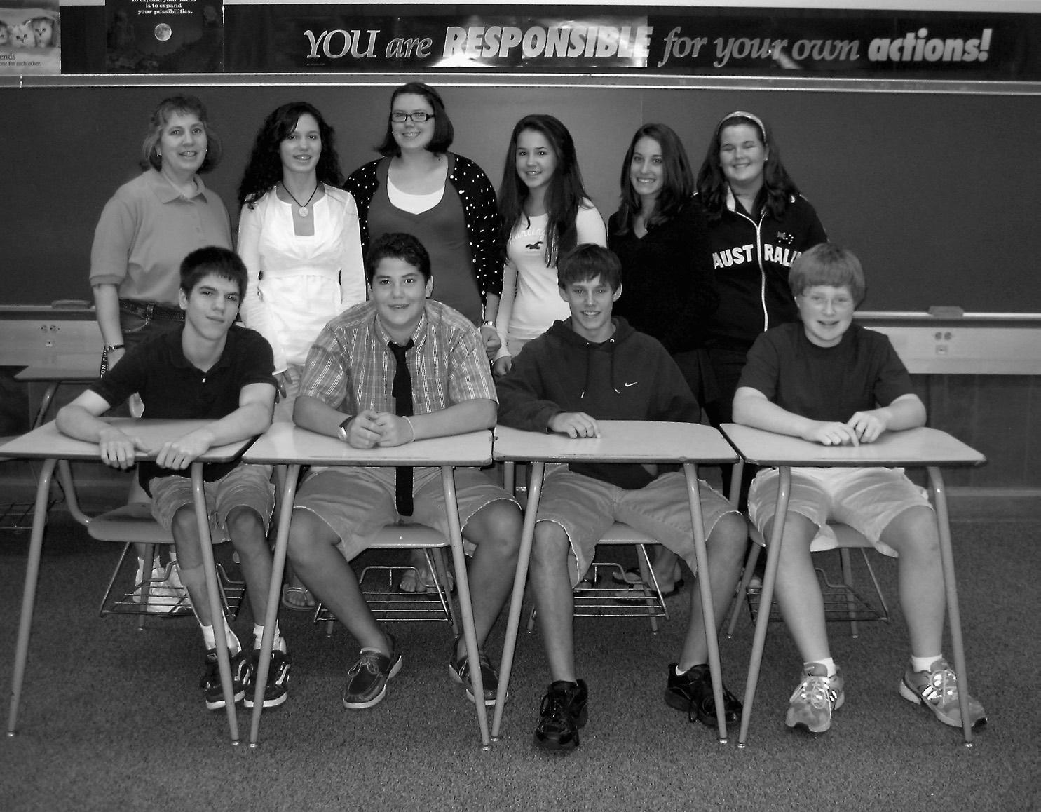 1st Row: Simone Veale, Will Gatti, Ted Ganter, Casey Lake, Alicia Thompson, Jennifer Kielhorn. 2nd Row: Mrs. Diana Saunders, Katy Shannon, Matthew Tornek, Margaret Sullivan, Blair Atkins, Aaron Gluck, Christina Aleman, Kalyn Nix, Katrina Skibicki, Mrs. Jill Masters. 3rd Row: Evelyn Wakely, Jayna Jones, Jessica Homitz, R.J. Fink, Owen Ganse, Matthew Denney, Ethan Moser, Caroline McGinnis.
