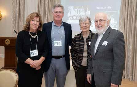 Clockwise from top left: Sandy Ranck King ‘75; the Class of 1975; Marty Marston Guglielmetti ‘70, Tom Scott ‘70, Dave Crosby ‘75, and Florence Crosby; Susan Kramer Flora ‘75, Rick Horwitz ‘75, Melody Hammond, and Harry Hammond; Jim Simon ‘60 and Dale Roberts Megill ‘60; Trina Tjersland ‘75 and Kathy Gehret Welsh ‘75.