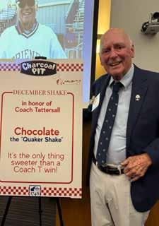 The evening concluded with a special tribute to Coach Bob “T” Tattersall, who has been part of the Wilmington Friends community since 1968 and is Delaware’s all-time winningest high school football coach. Speakers including Head of School Ken Aldridge, former Head of School Bill Goulding, Rob Buccini ’86, and Dr. Peter Townsend ’75 recalled the impact of his decades of leadership, mentorship, and sportsmanship. In true Friends School spirit, everyone raised a toast with chocolate milkshakes from The Charcoal Pit—where Ken revealed that, for the month of December, the chocolate shake would be renamed the “Quaker Shake” in Coach T’s honor.