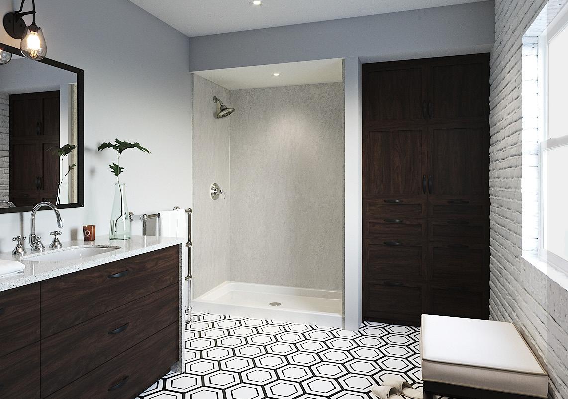 When families need a new bathroom, but can’t manage without the old one, they turn to Wetwall. Thanks to the convenience of the tongueand-groove system, our waterproof panels snap into place, right over worn-out tile.