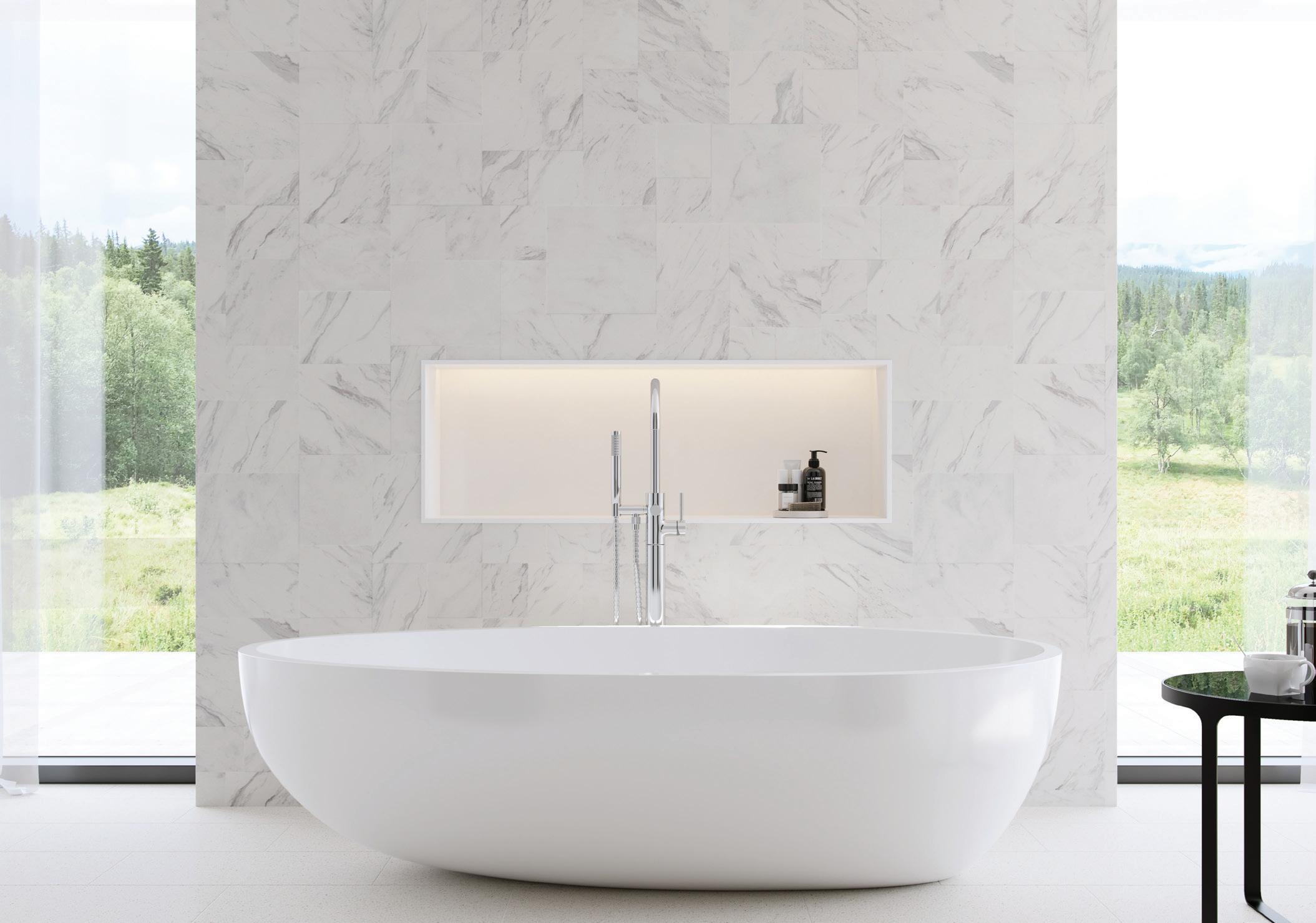 Complete your bathroom transformation with coordinating, prefabricated niches & shelves. Available in Clean White (as shown) & Calm White.