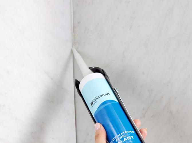 Wilsonart ® high-quality sealant comes in 6 colors—specially formulated to match the colors of all Wetwall panel designs. Plus, it’s antifungal, providing a lasting water-resistant seal.