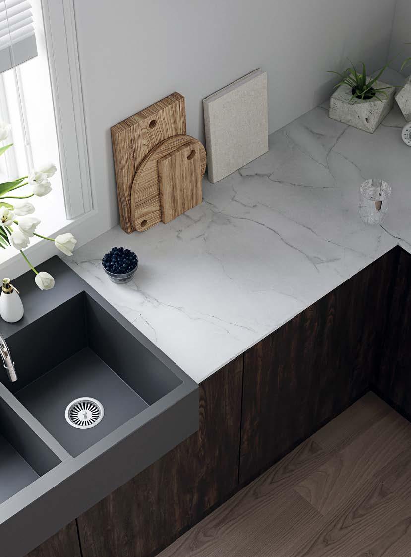 Complementary products: for the availability of the decor you have chosen for your splashback, frontage or cabinets, please consult the availability table on pages 76-81./ Produkty uzupełniające: aby poznać dostępność dekoru wybranego dla ściany nad blatem, frontów lub szafek, zajrzyj do tabeli dostępności na stronach 76-81 More decors available in our Interior Design Collection on polyrey.com. Więcej dekorów jest dostępnych w naszej kolekcji Wyposażenie wnętrz na stronie polyrey.com.