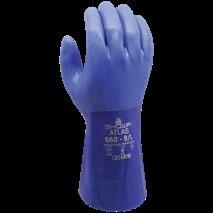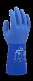 Water-, olie- en chemisch bestendige PVC-handschoen met katoenen voering Ideaal voor zwaar werk in vochtige, vettige of chemische omgevingen. Ook leverbaar als KV660 met snijbestendige Kevlar®-voering.