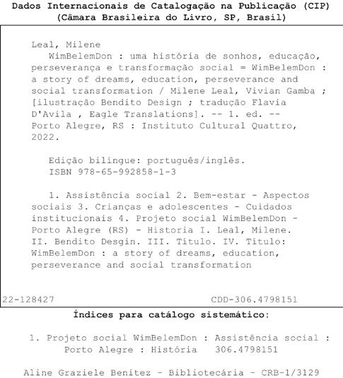 Os 22 anos de vida do WimBelemDon são compostos de centenas de personagens: educandos, famílias, funcionários, voluntários e apoiadores. São diferentes papéis com uma causa em comum: a TRANSFORMAÇÃO SOCIAL. Essa missão, que teve sua trajetória até aqui registrada neste livro, continua. No momento em que você está finalizando essa leitura, certamente, outras páginas já estão sendo escritas. Se você está curioso para conhecer essas novas páginas, aprofundar-se ainda mais no nosso trabalho ou, ainda, tornar-se parte de nossa história e ajudar a construir o nosso futuro, ACESSE O QR CODE ABAIXO e visite uma página especial do nosso site. Nela você vai encontrar a versão digital deste livro em outras línguas e descobrirá como contribuir para que o WimBelemDon possa ter outros 22 anos de lindas histórias de sonhos e conquistas.
