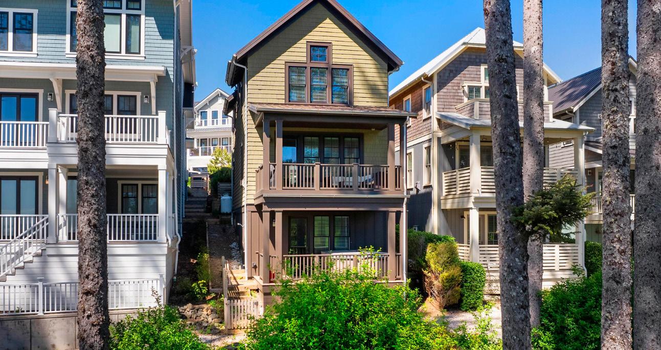 Live-work townhome in Pacific Landing featuring three bedrooms and an open concept living area, electric fireplace, and walkout balcony. Two levels of living space sit above a garden-level shop in Seabrook’s Town Center, within easy reach to beach access. #2378042. $2,400,000.