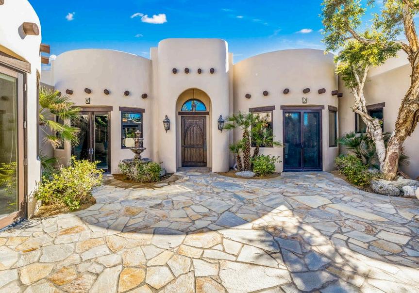 5400 SF luxury Palm Desert home featuring 3 bedrooms, 3.5 bathrooms, with spacious primary suite, two guest bedrooms with private entry and living room, separate office with built-ins and bonus room. Enjoy modern amenities like a gourmet kitchen with marble countertops, SubZero fridge, double ovens, gas range, walk-in pantry and spacious outdoor space with pool and spa.