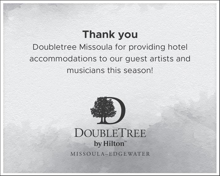 2 MISSOULA SYMPHONY ASSOCIATION ServingYourNeeds inourStateoftheArt OrthopaedicSurgeryand PhysicalTherapyFacility. Orthopaedic.com 2740SouthAveW.,Ste101 Missoula,MT59804-5114 406-728-6101 800-823-2663 LarryStayner,M.D. TaylorBuckley,M.D. JessicaTelleria,M.D. JustinJacobson,M.D. DanielWhiting,M.D. JoelTorretti,M.D.