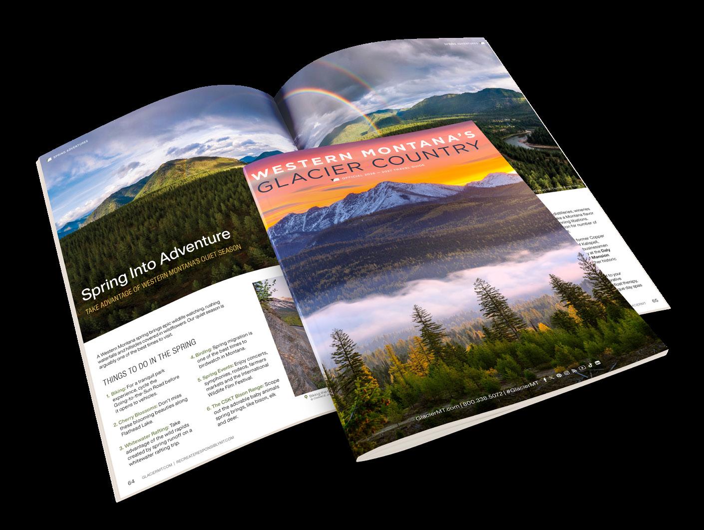 Destination spending in Glacier Country generated $1.76 billion in 2024 (ITRR). Regional attractions such as Glacier National Park, one of the top two destinations in Montana, draw millions of visitors to our area. 150,000 copies of the guide—with an estimated readership of 500,000—will be distributed in 2026 and 2027 to consumers and travel professionals. We invite you to join us in bringing the best of Western Montana to the attention of prospective visitors.