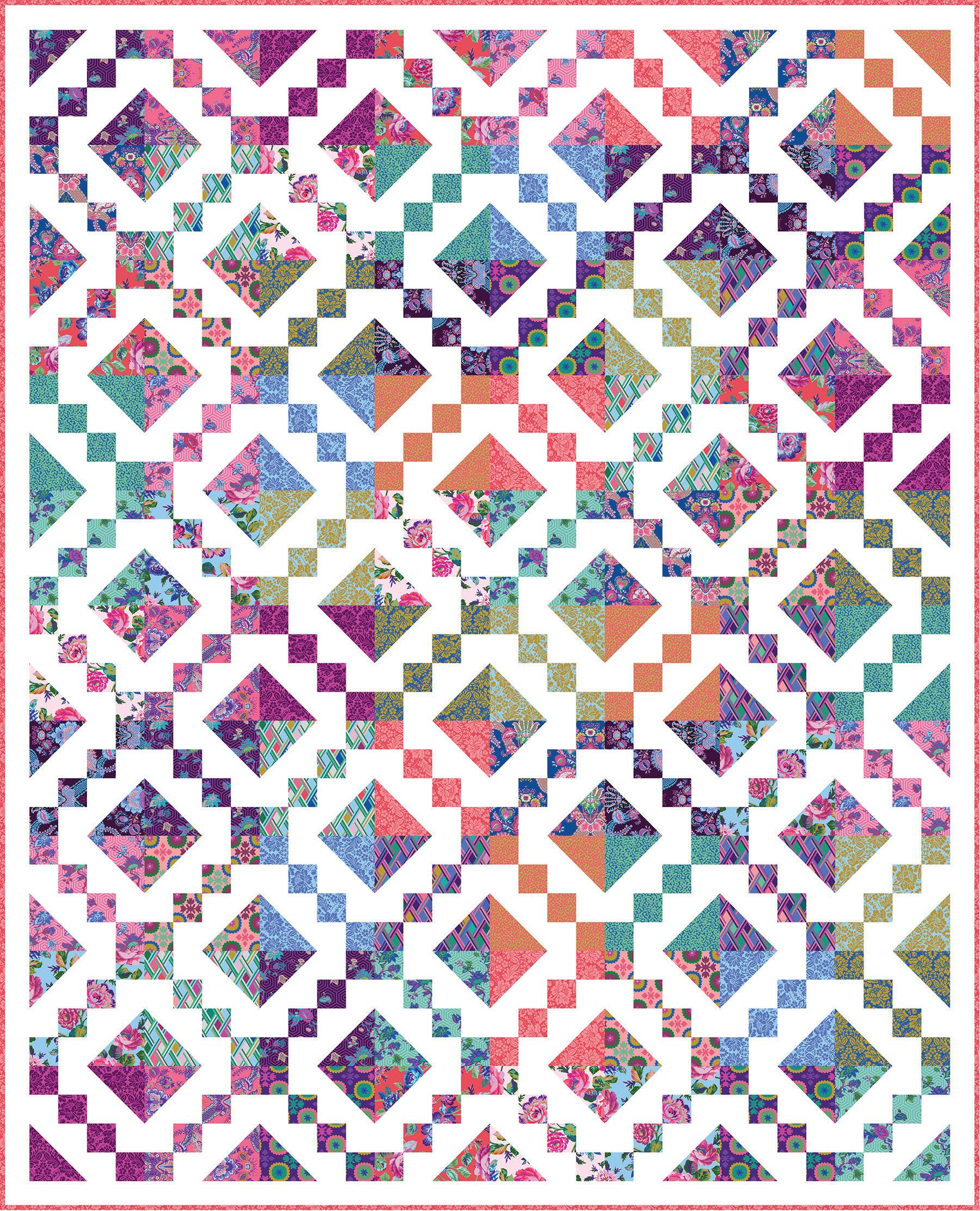 REPEAT SIZE: 24” X 42” simply add borders, binding and backing for an exciting quilt top!