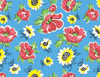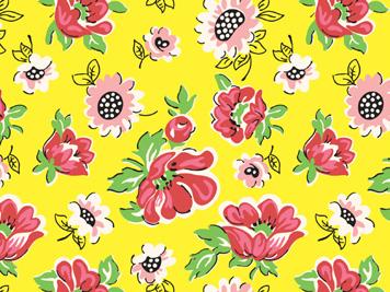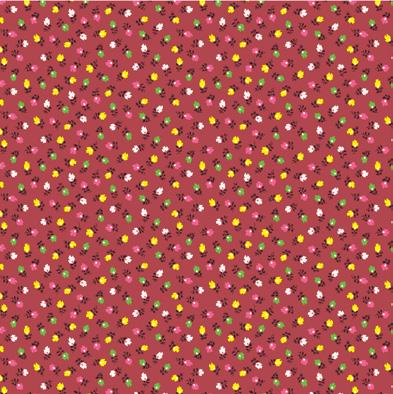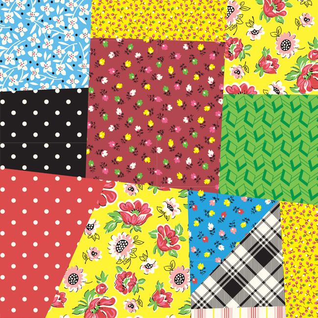 Pie Lady celebrates Americana with prints that call to mind a well-loved kitchen, the gingham tablecloth dusted with flour as dough is rolled for pies to celebrate the bounty of the harvest (and maybe garner a prize ribbon)! Sweet floral curtains frame the view of the garden, sunlight streaming in on jars of freshly canned fruits and vegetables topped with calico-wrapped lids. An apple pie cooling on a vintage rack fills the room with a mouth-watering aroma. Home-made quilted potholders, mom’s old red-handled rolling pin, and a crazy-patchwork cheater print apron complete a nostalgic polaroid snapshot capturing the joy and love of home, celebrating with family and friends.
