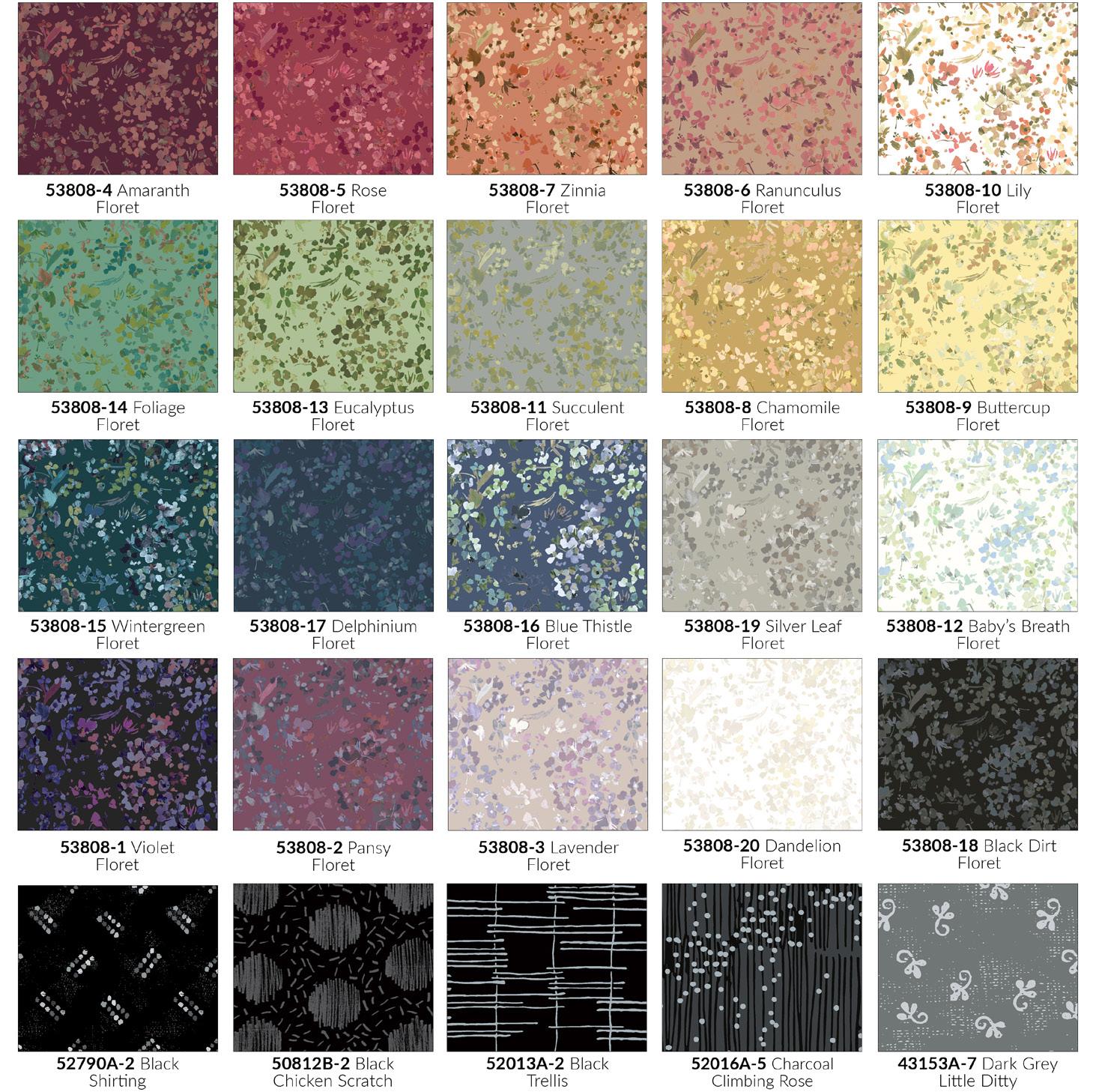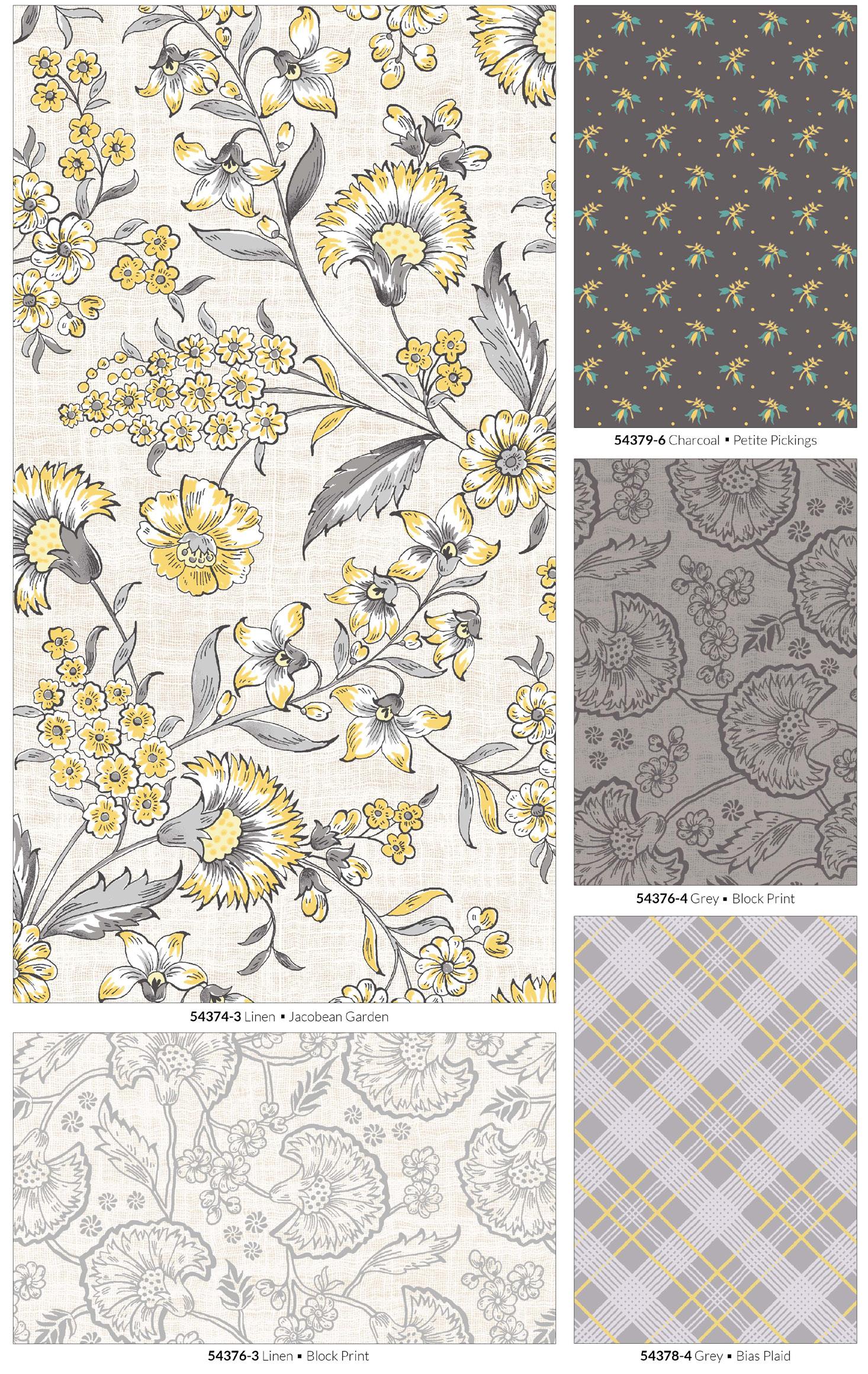A parade of beauty is here! Fanfare by Whistler Studios takes timeless designs with a modern color palette to new heights. This stunning selection of Jacobean-inspired floral bouquets, climbing vines, ditsy blooms, and sweeping bias plaids makes a can’t-miss combination! Enjoy 17 delectable prints.