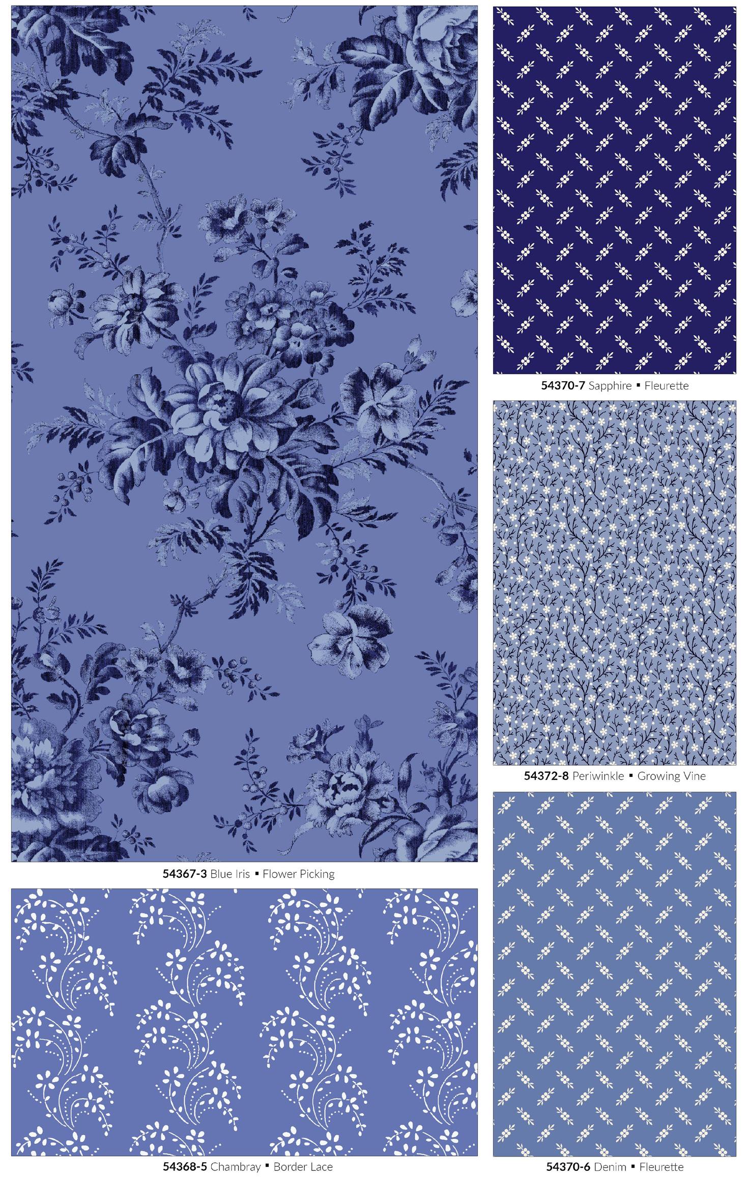 Wandering vines and delicate bouquets bring a level of elegance to your sewing projects. From sapphire to deep indigo, take a dive into the blues of Jasper Blue by Whistler Studios.