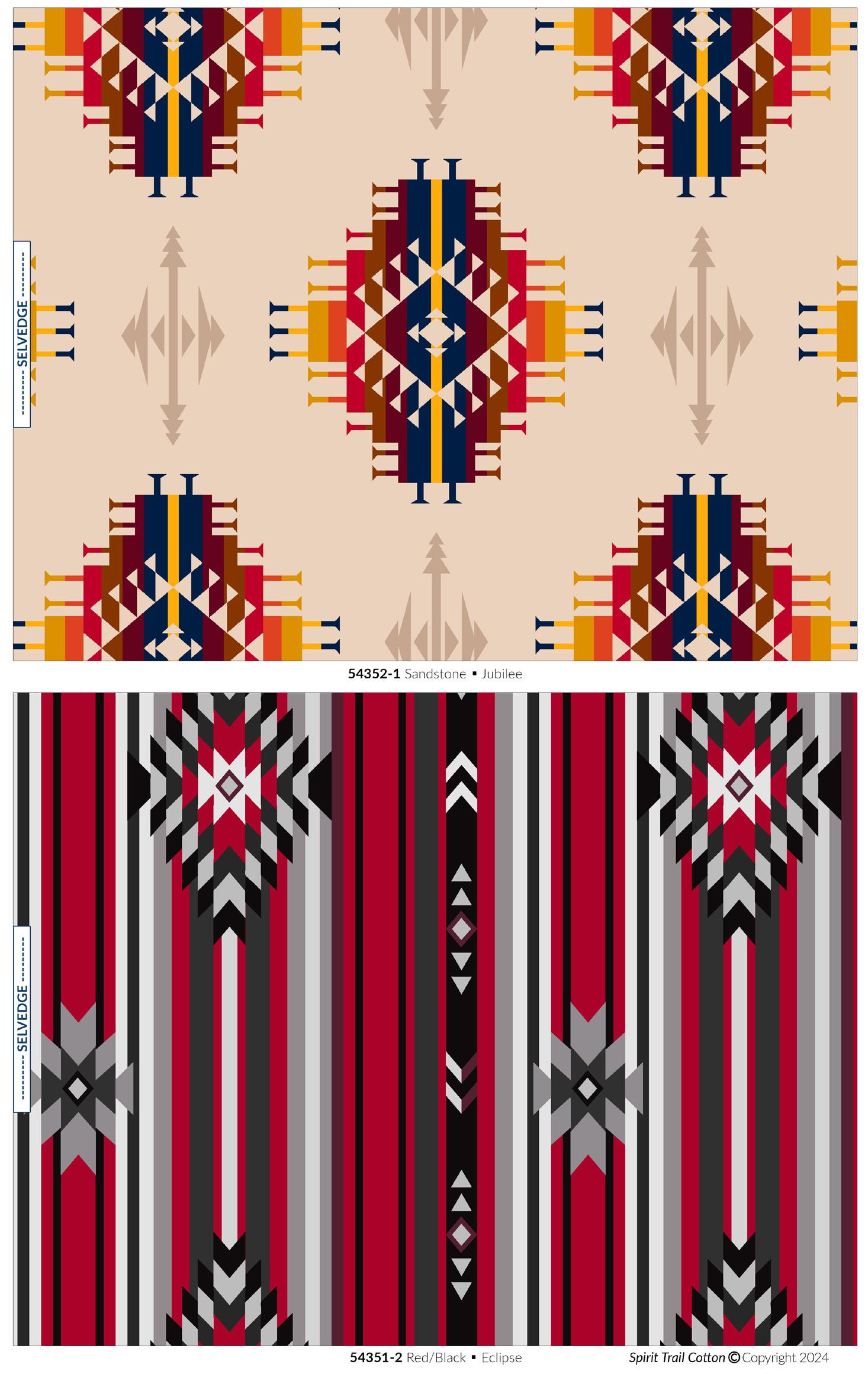 Our Spirit Trail Prints include an assortment of decorative traditional southwest designs in rich colors of earth,