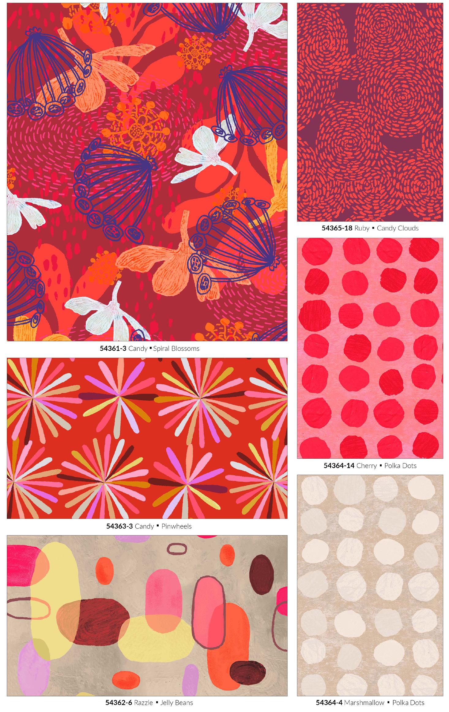 “Carousel is my second collection with Windham. Inspiration was taken from the colors and forms in my abstract painting. This fresh bright palette conjures memories of my childhood experiences at the fairgrounds. Bright lights, the circus signage, jewel tone colors of the carousel, roller coasters and bumper cars. It has been a pleasure to play with the creation of these designs, and recall the feeling of spinning and swirling in giggles of joy. May it bring the bright smiles of childhood into your creations. ”