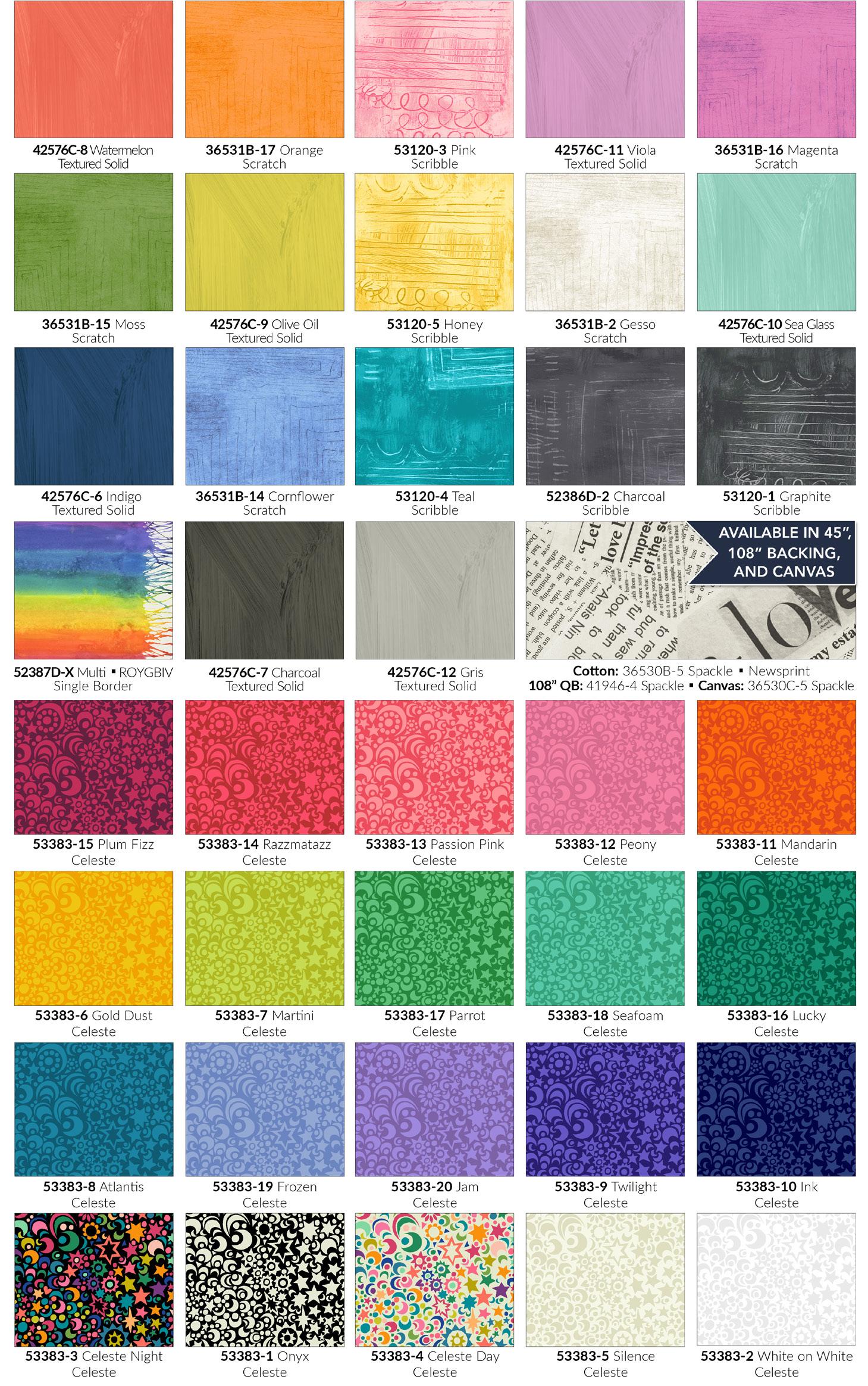 Must-have essentials for every quilter, crafter and maker. Featuring designer essentials from: Annabel Wrigley, Carrie Bloomston, Heather Ross, Jacqueline de Jonge, Katherine Quinn, Kelly Ventura, Marcia Derse, Natalie Barnes, and Sally Kelly! Get reorderable novelty basics such as, timeless camouflage, cute & cuddly animals, delicious food prints and so much more!