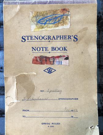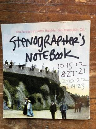 This collection emerged from two artist books I have been gradually developing over the years. The first was a Stenographer’s Notebook from 1936, something I picked up at an estate sale years ago. I am always on the hunt for paper, especially old paper with handwriting. Over the years I overlaid paintings and sketches onto the pages not knowing where it would lead.