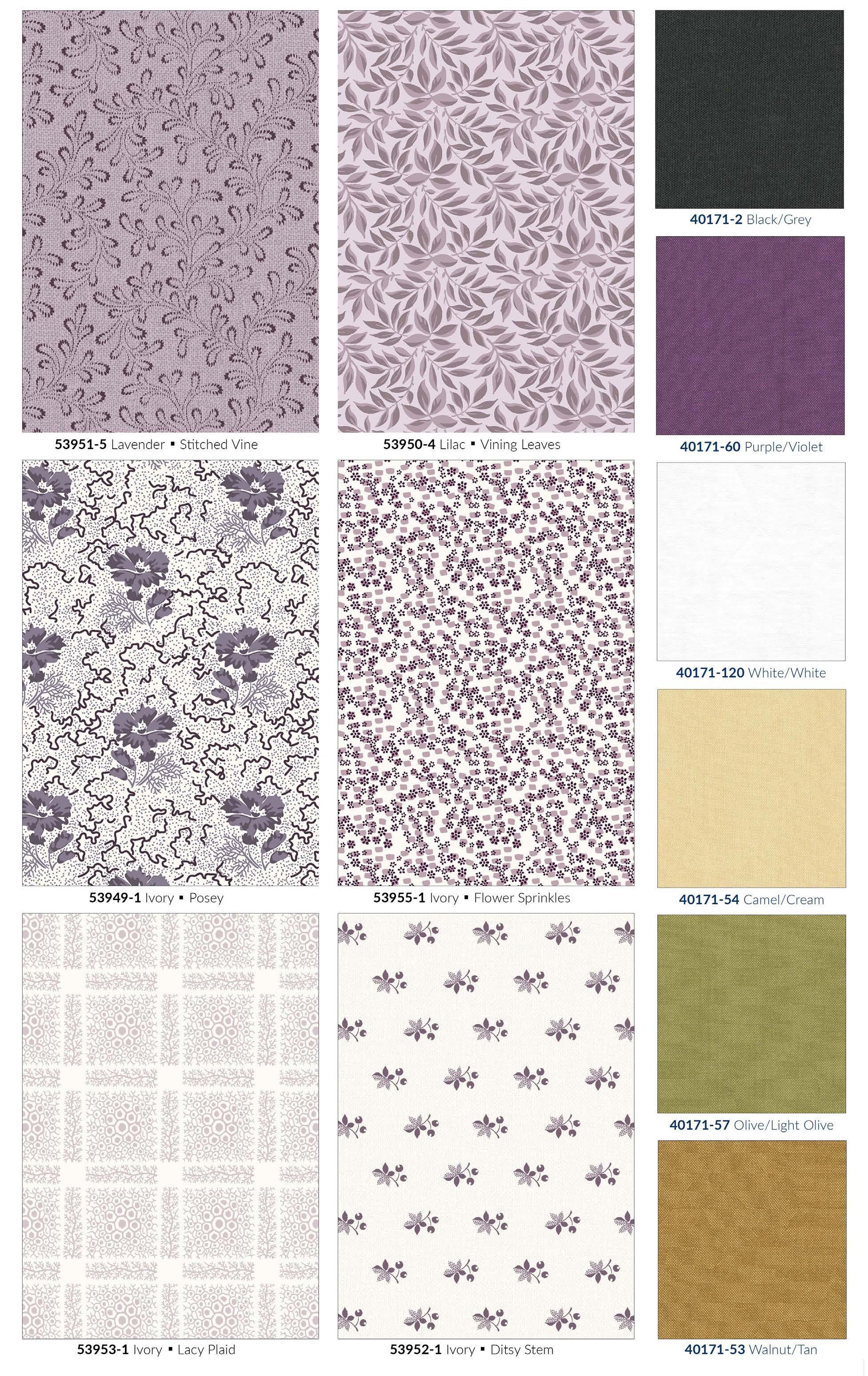 Circa Purple features a small but regal assortment of delightful reproduction prints. The collection is available in a symphony of purple hues from deep plum to delicate lilac. Reminiscent of bygone eras, Circa Purple will add a touch of timeless elegance to any heirloom sewing project.