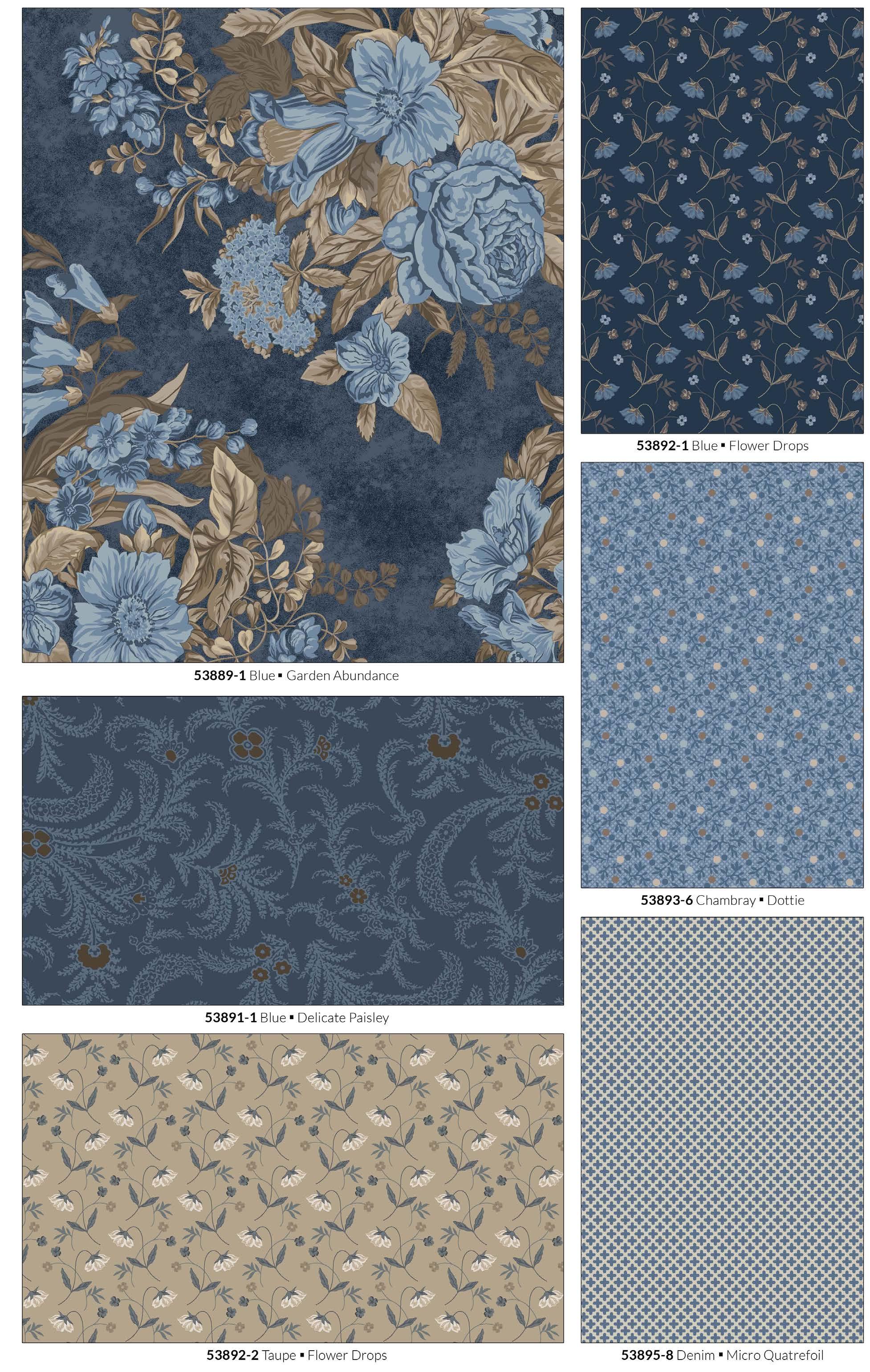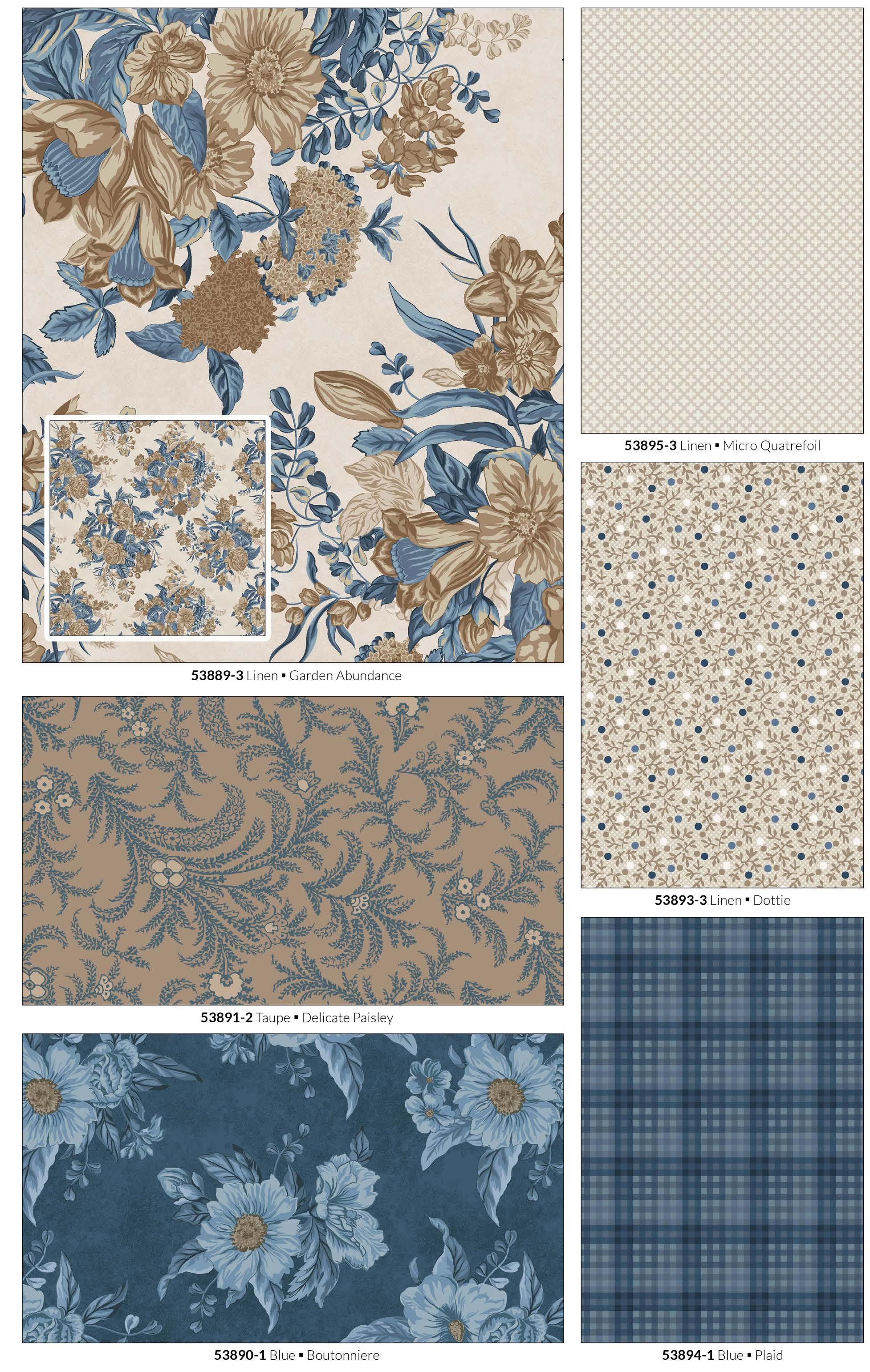Inspired by the timeless beauty of a mid 1800’s English garden, Mary Koval’s Oxford captures the essence of classic sophistication and natural grace. The refined palette of taupe, almond brown, slate blue and linen white will infuse warmth and depth into your next crafted work of art.