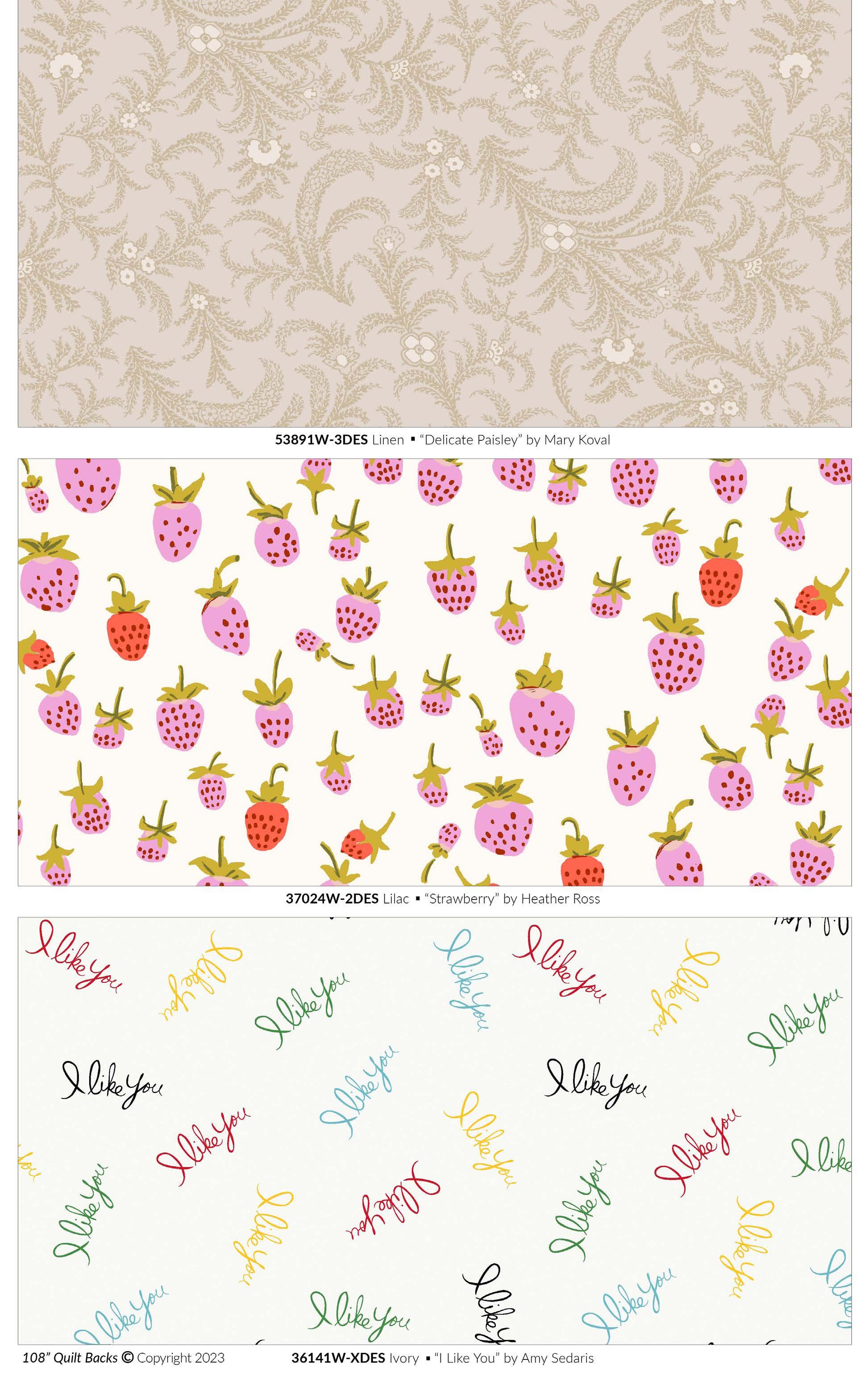 We are constantly developing new 108” wide backs to meet all your sewing needs. Stay tuned for more awesome designer 108” wide backs!