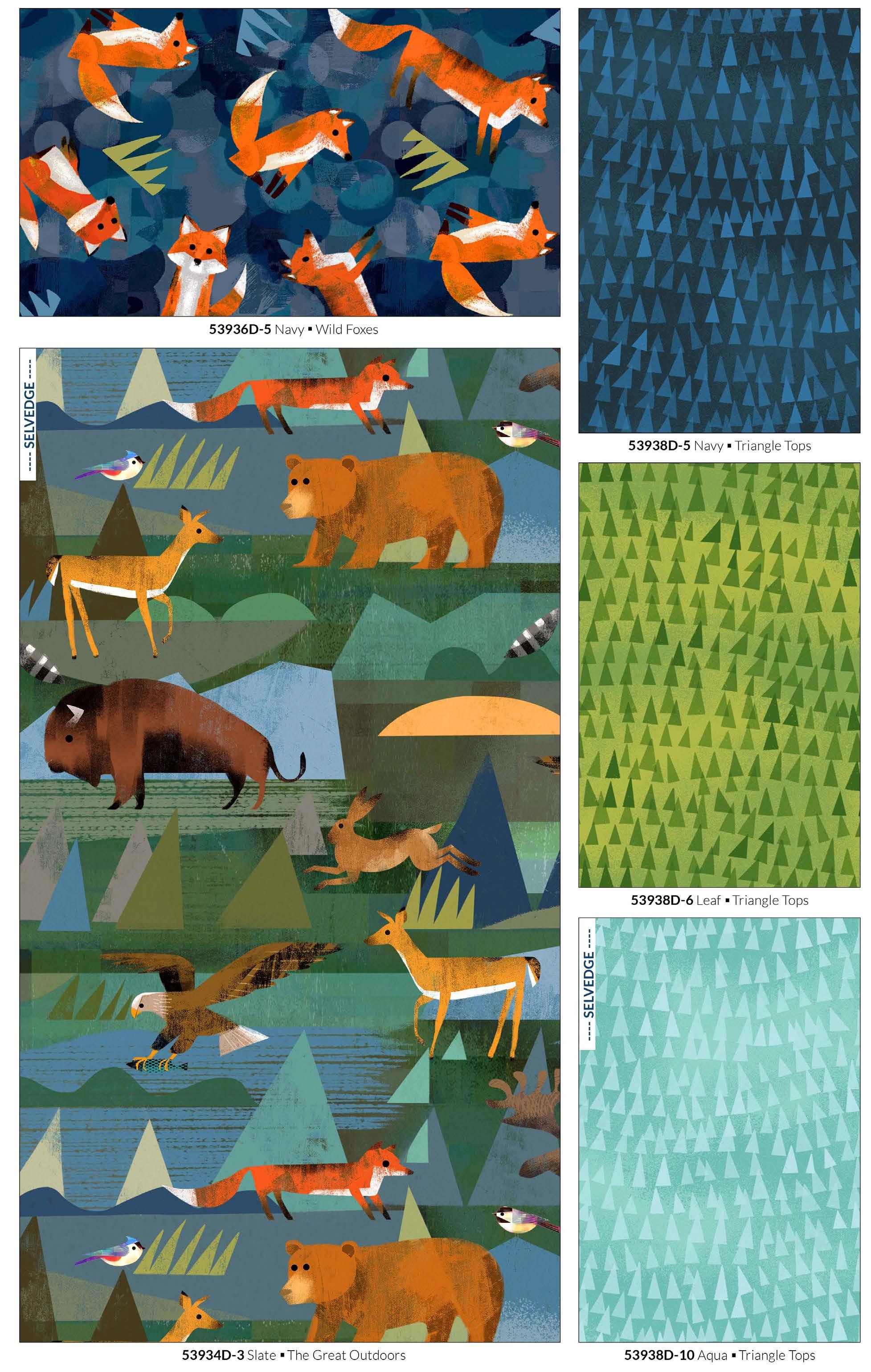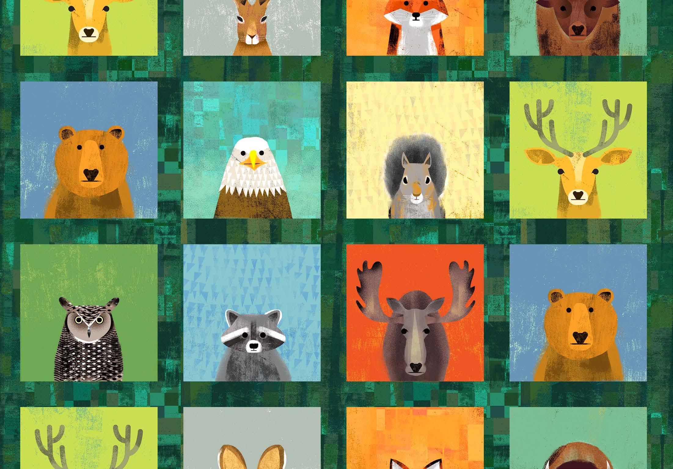 Gareth Lucas, renowned for his delightfully whimsical illustrations, brings an array of woodland creatures to life in Wild North. In a palette of forest green, rustic brown, vibrant ochre and earthy orange, Lucas is able to capture the essence of the great outdoors. Whether you’re creating a cozy throw for a cabin retreat or a striking quilt for a modern home, Wild North offers endless possibilities.