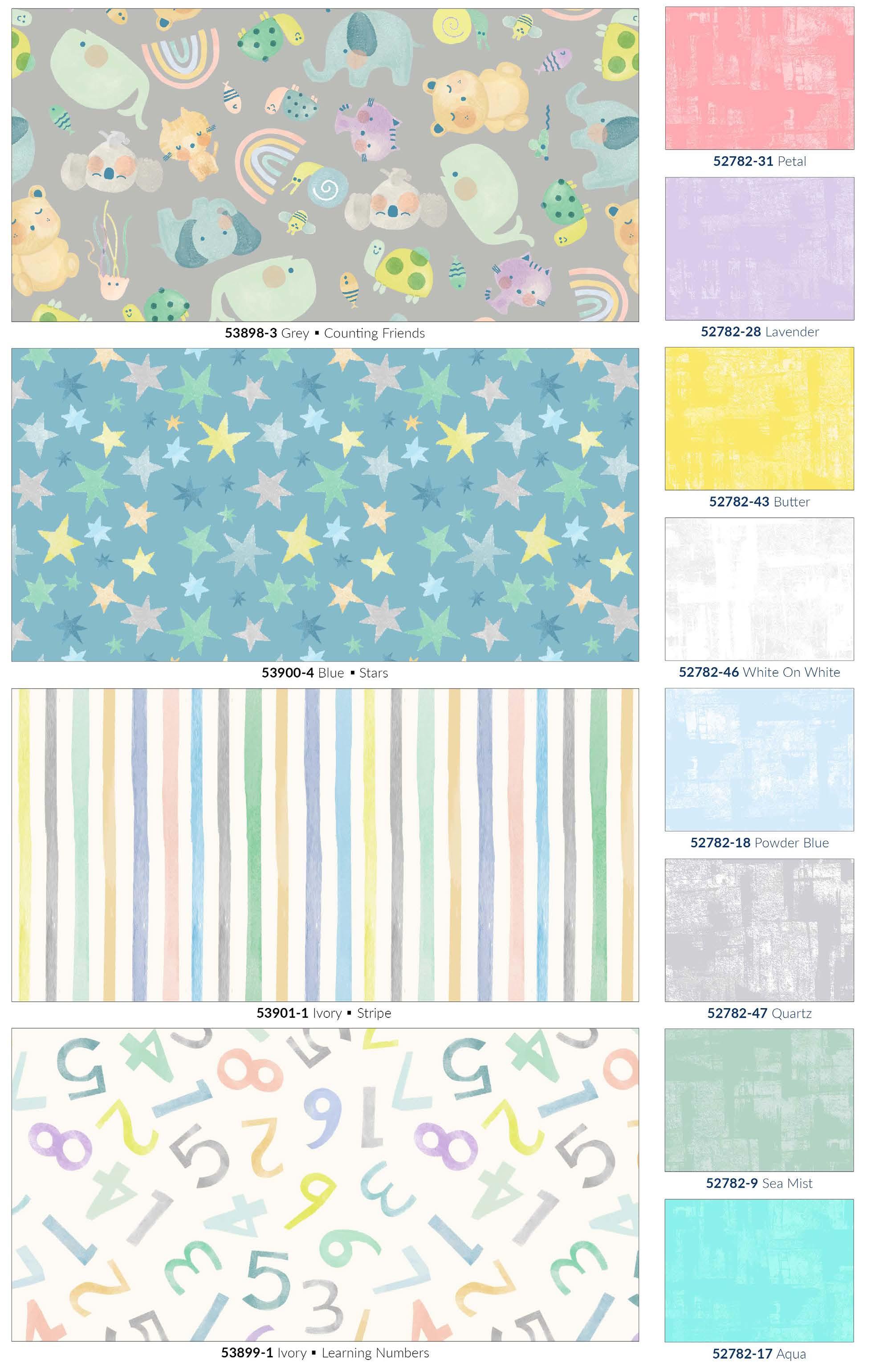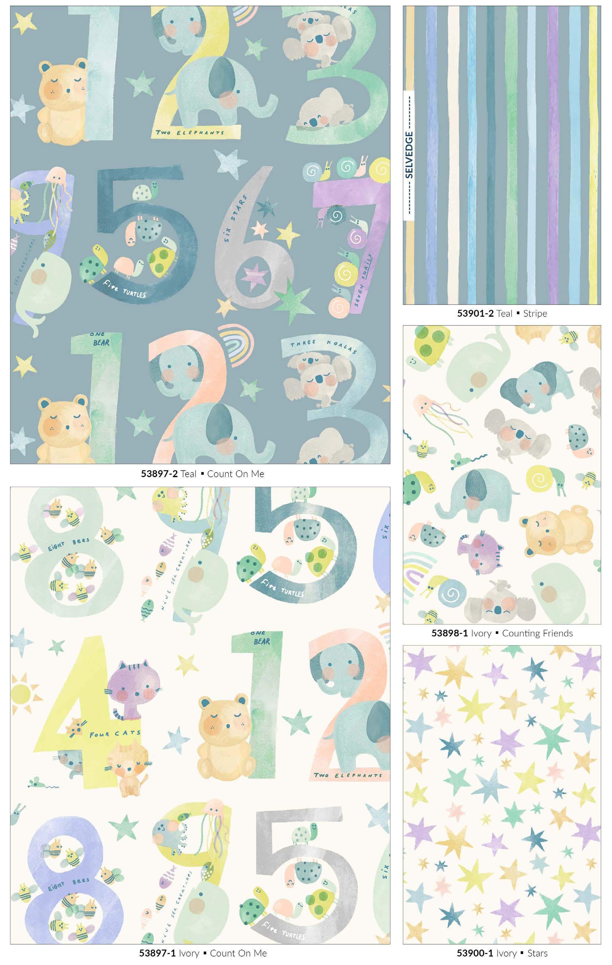 Craft with love for the little ones in your life with Count on Me. This delightful baby collection features cute and cuddly animals, magical stars, painterly stripes, adorable number prints all in a soft and muted palette. The precious assortment is rounded out with a milestone mat - perfect for lovingly capturing a baby’s first year.