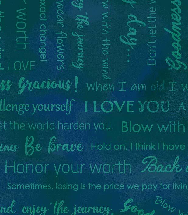SUMMER 2023 WINDHAM GARMENT CATALOG • SHIPPING DATES VARY BACK TO TABLE OF CONTENTS 109 SUGGESTED 108” QUILT BACK 53939DW-1DES Teal • Growing Tree designed by gareth lucas NEW 108” BACKING!
