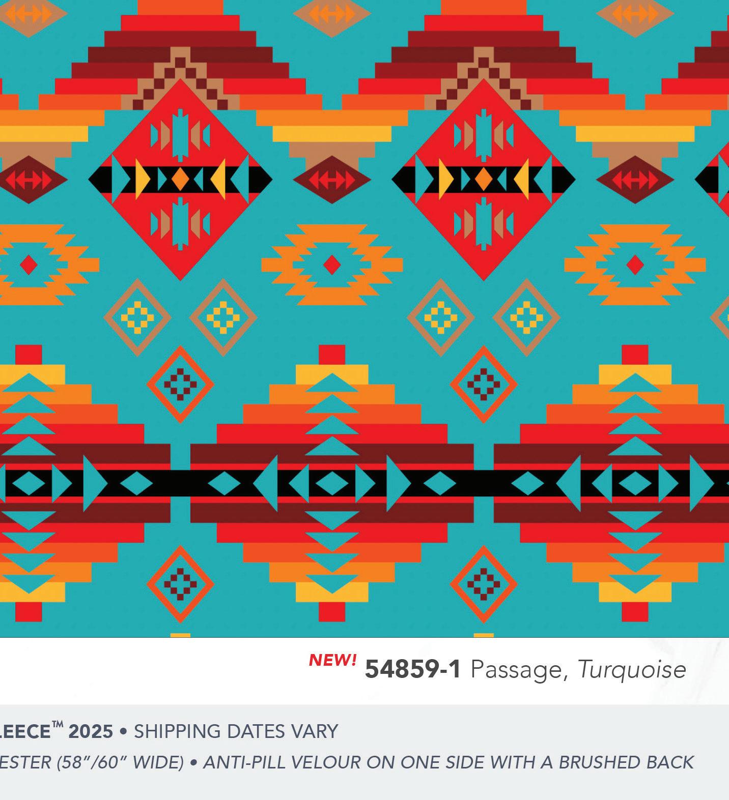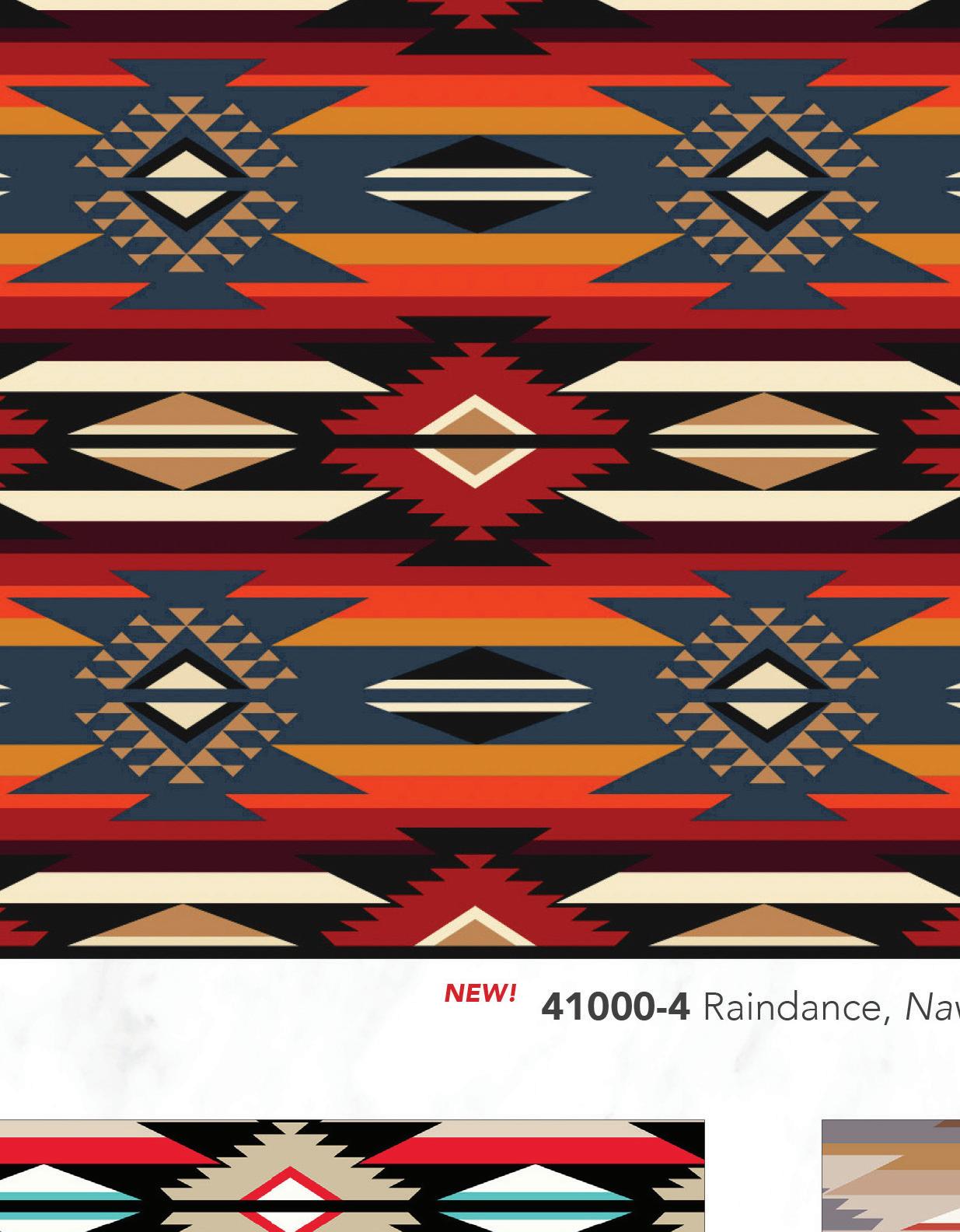 Our Spirit Trail prints include an assortment of decorative stripes and motifs inspired by traditional southwest designs in rich colors of earth, stone, onyx, turquoise, red clay and more.