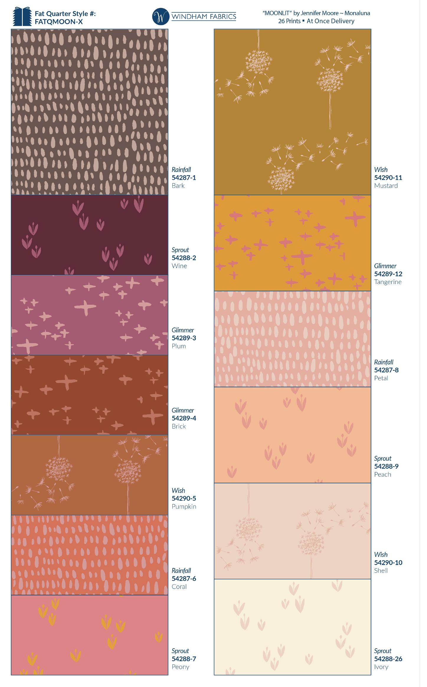 “The Lush Life collection was inspired by the big, bohemian florals of the early 70’s. The stylized poppies and flowering branches are reminiscent of prints that were in my house when I was growing up, a mix of classic themes with a bit of folk, and a bit of groove. The motifs are all hand-painted to give the collection a natural, imperfect feel. The collection includes several large and lush florals supported by smaller accent prints, and each of the colorways blends well with a number of the semi-solids from the Moonlit collection. All of the fabrics in this collection are GOTS-Certified Organic and Oeko-Tex Certified.” ~Jennifer