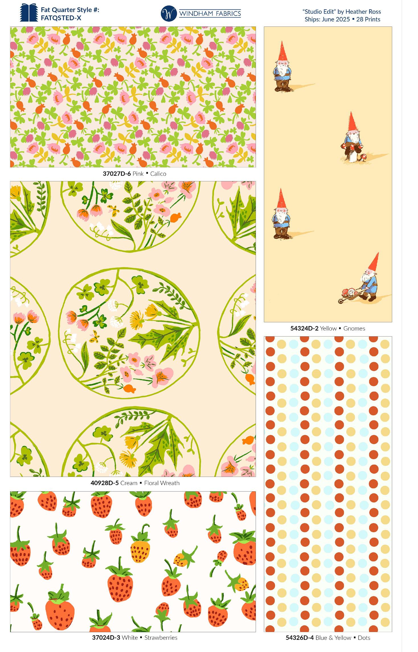 “Studio Edit is a celebration of my favorite prints—designs that have resonated with me over the years and continue to bring joy to makers. For this first volume, I curated a mix of past classics and a few fresh updates, all chosen with care from the archives of my studio. Each print tells a story of its own, but together they create a collection that’s versatile, inspiring, and deeply personal. My hope is that Studio Edit will spark creativity and find its way into the projects that bring you the most joy.” ~Heather