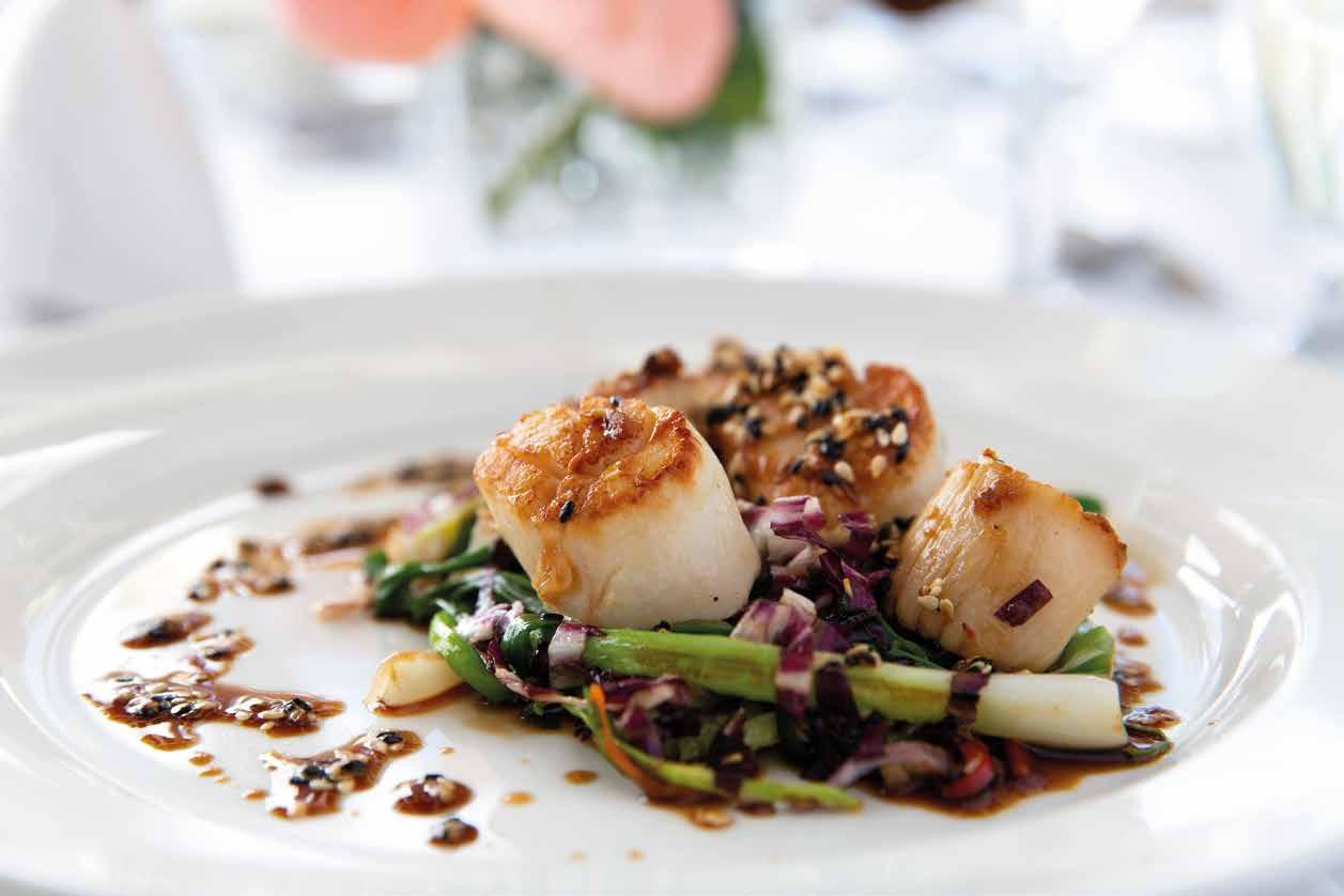 Seared Curried Big Eye Tuna, Puy Lentil Salsa, Mango Aioli, Dressed Micro Greens