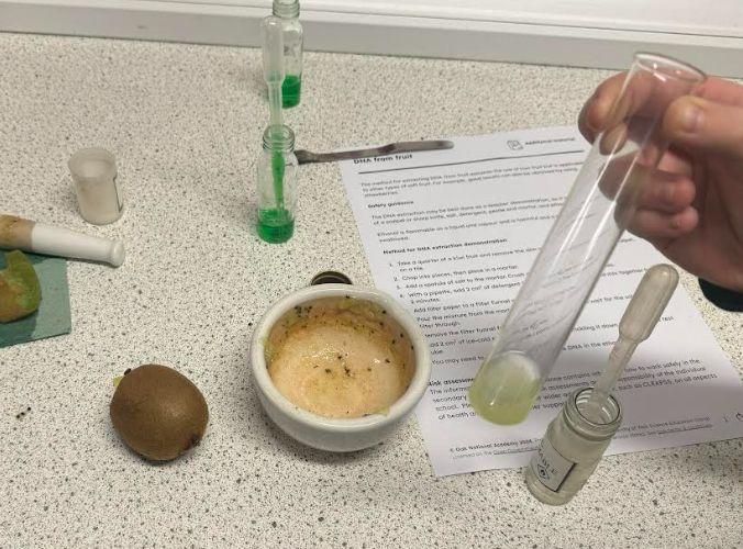 Followingthetheoreticalcomponent,studentsconductedapracticalinvestigationbyextractingandobserving realDNAfromkiwifruit.Thishands-onexperimentreinforcedconceptuallearningandintroducedlaboratory techniques.Thelessonwasbothengagingandintellectuallystimulating.