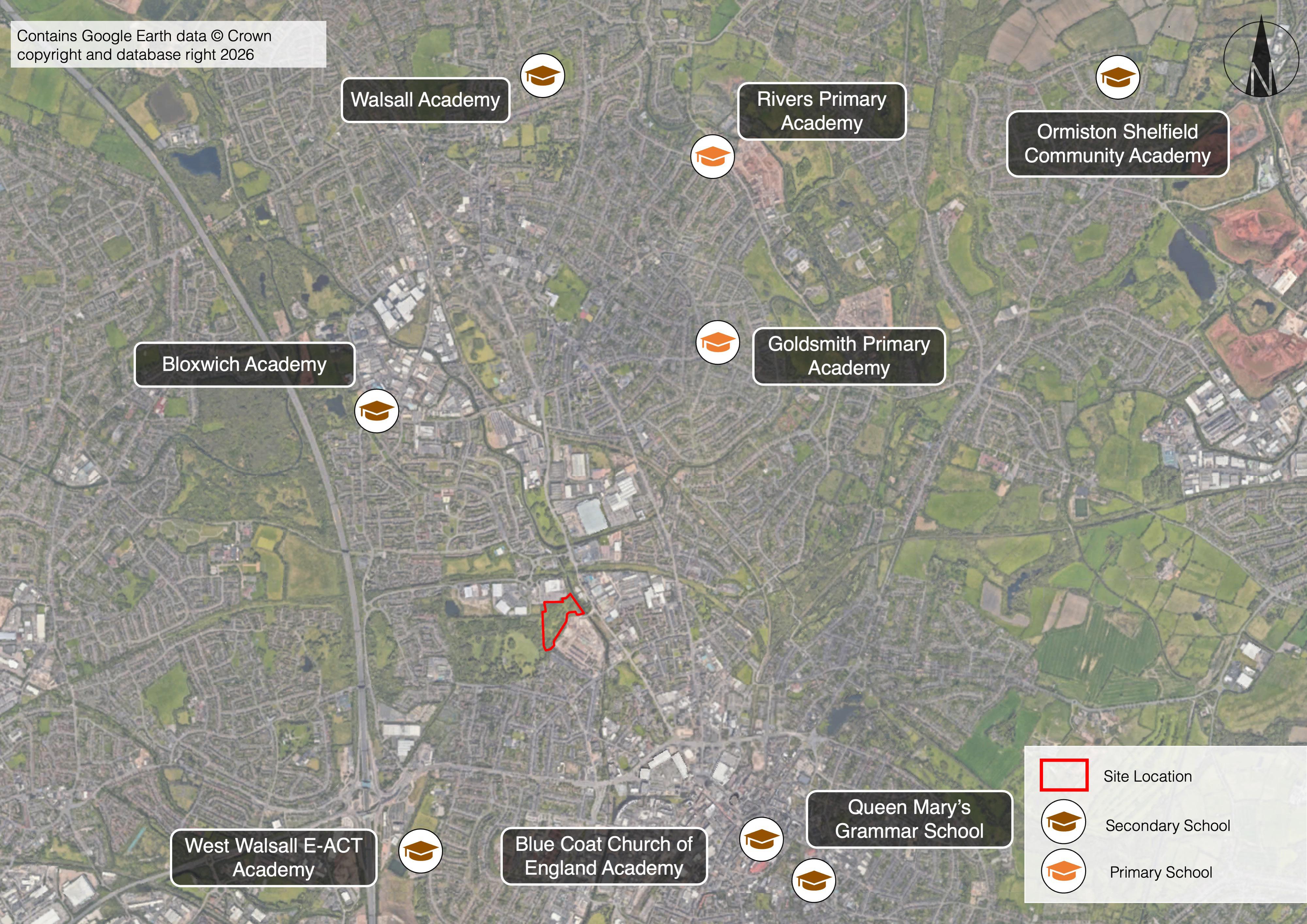 Windsor Academy Trust operates two primary schools in Walsall (Goldsmith Primary Academy and Rivers Primary Academy), which will act as feeder schools for the proposed secondary school alongside local residents. A dedicated bus service is currently proposed to cater for pupils from the Trust’s two feeder schools, with a dedicated area for buses proposed on site.