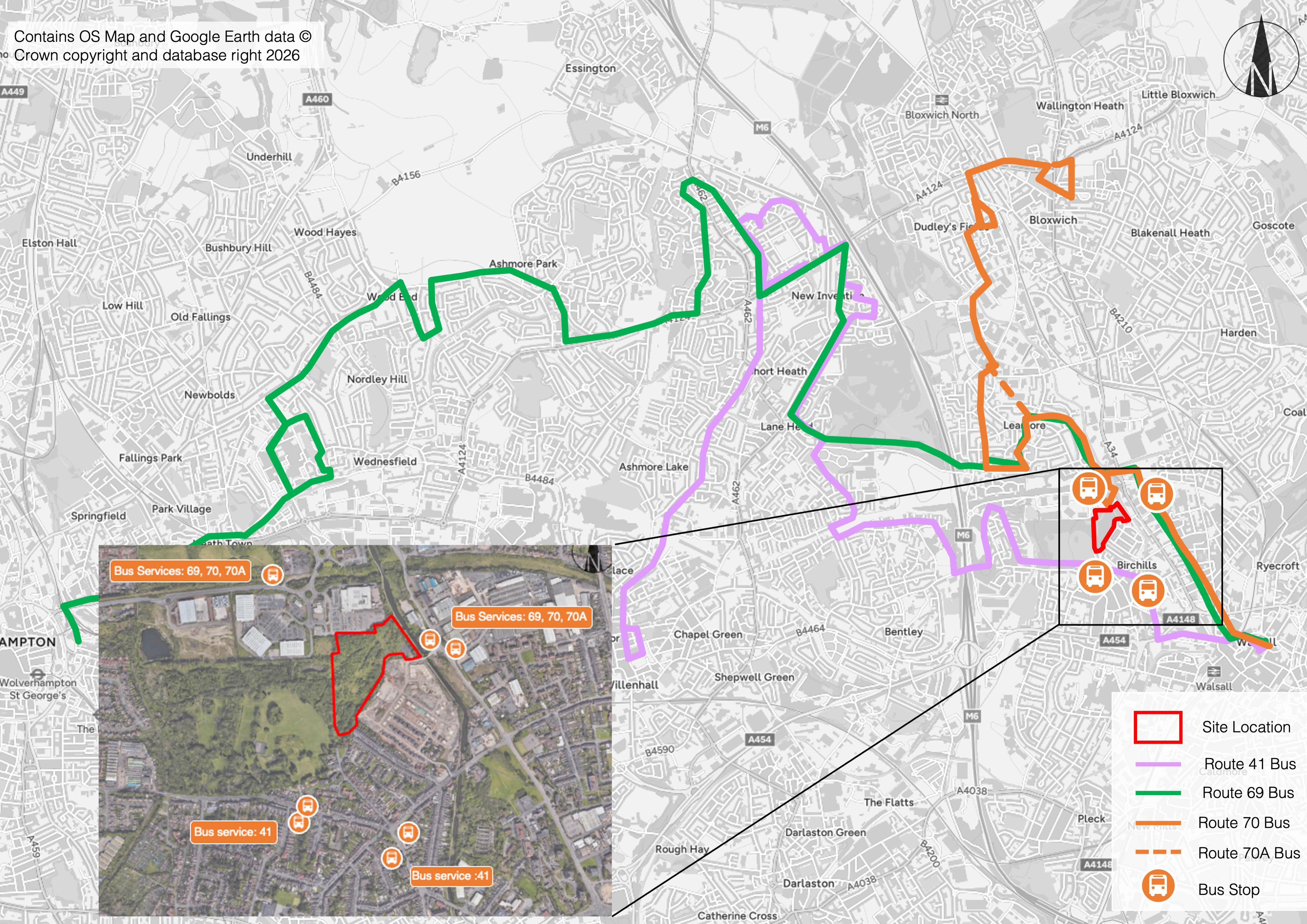 All potential routes and connections to the site are being considered in detail, including opportunities for pedestrian and cycle access via Reedswood Lane, Reedwood Park, Raybould’s Bridge Road, Reedswood Retail Park, and the canal footpath. This will inform the Movement Strategy that will be prepared to support the full planning application in consultation with the Highway Authority.