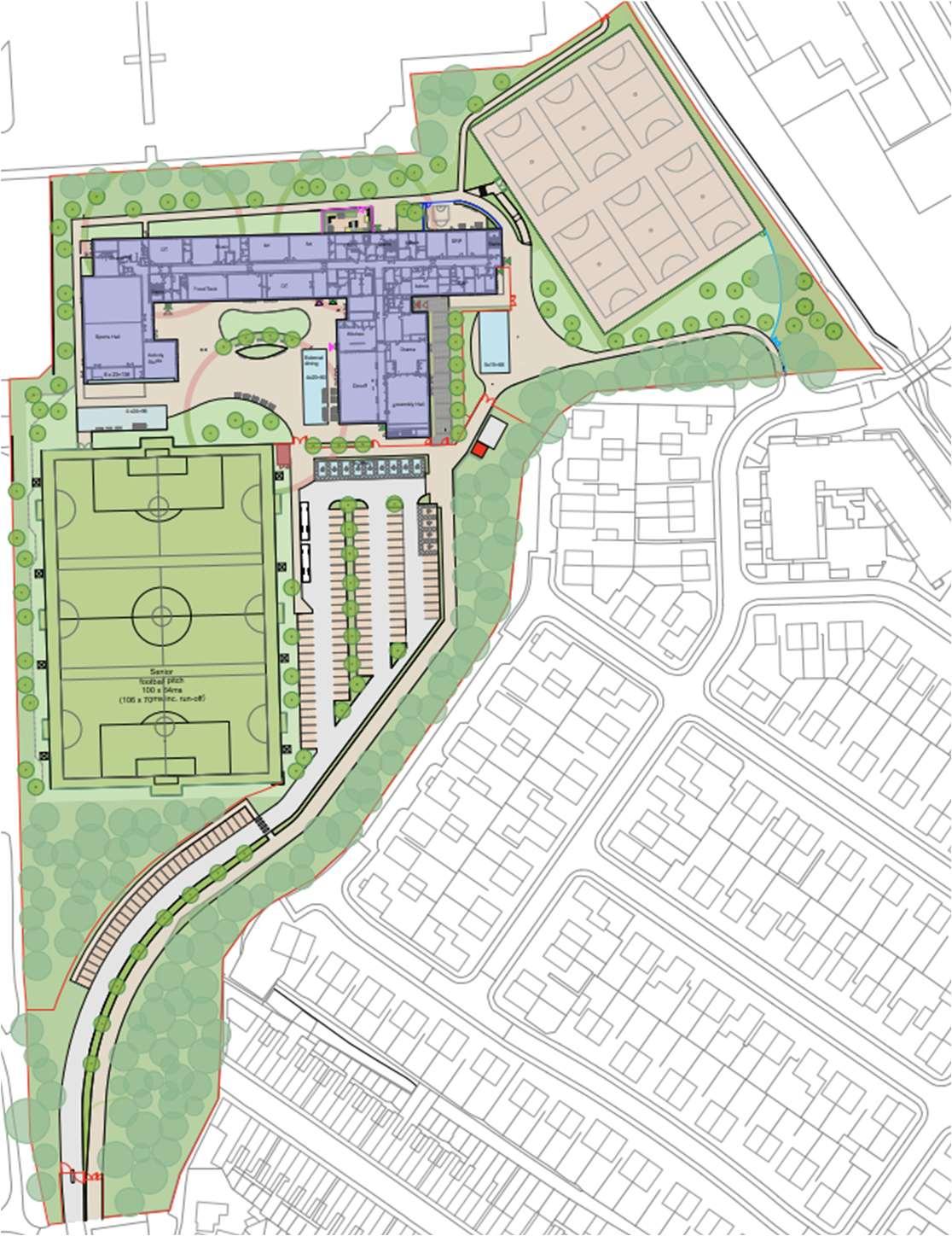 • Location of Sports Provision - The new secondary school will include outdoor sports provision for use primarily by the school, with some community access outside of school hours. An all weather pitch and a multi-use games area will be provided within the site. The all weather pitch may include flood lights. The sports provision will, therefore, need to be located away from residential properties and sensitively designed to safeguard ecology.
