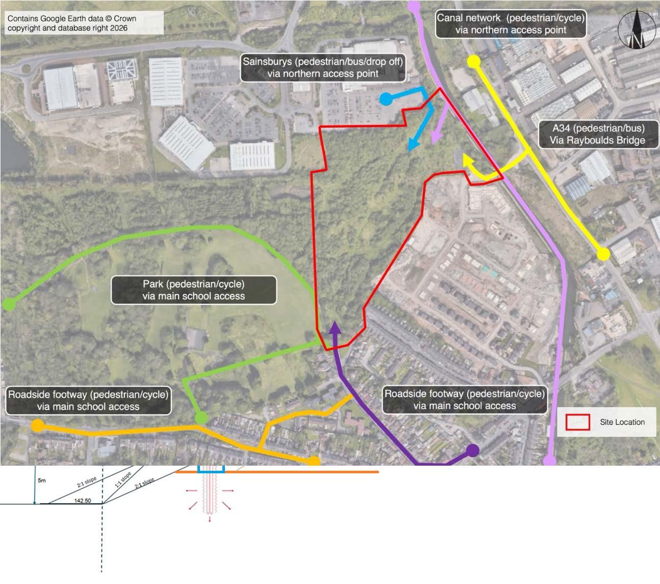 The site is located in a sustainable location, with access to existing bus, pedestrian and cycle routes, which also provide access to other schools in the area.