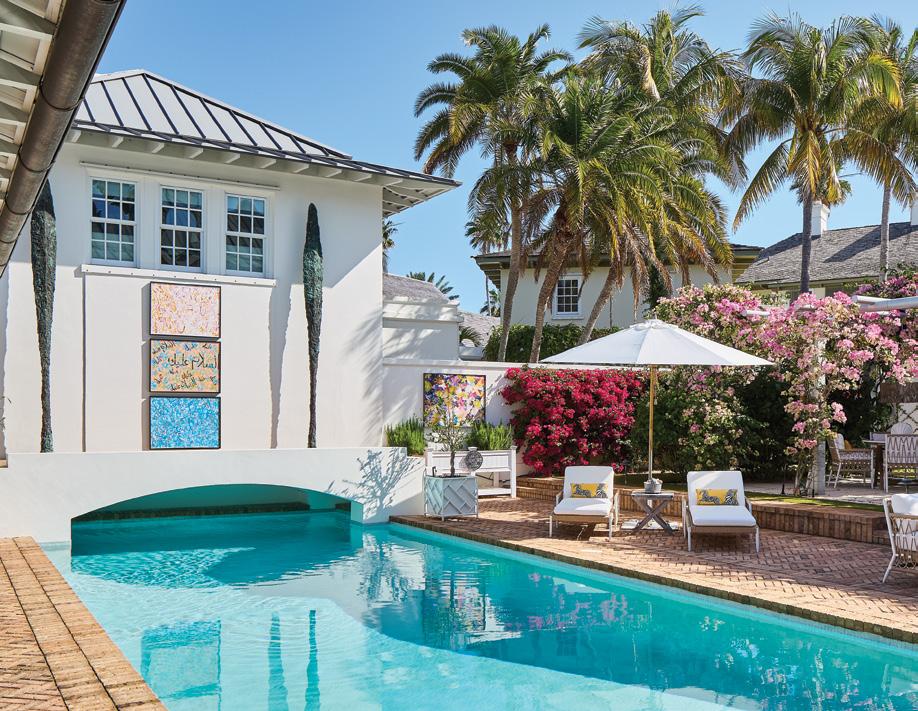The tour included a British Colonial-style home, built in 2000, that was renovated and redesigned two years ago to present an artistic mix of different styles and periods with delightful moments of whimsy. Designer Melissa Lindsay gave each of the outbuildings a distinct vibe of its own, including a guest suite that feels tropical and edgy. By the pool, one cabana became a cheery retreat while the other sports a masculine Havana feel.