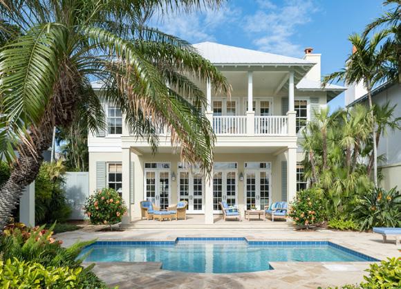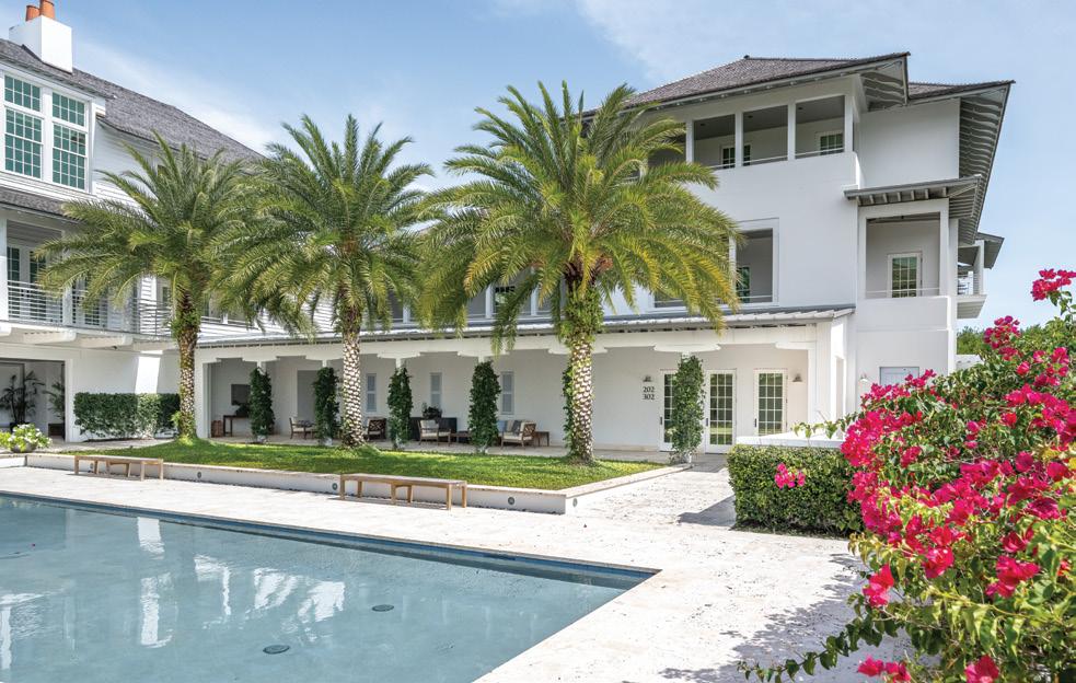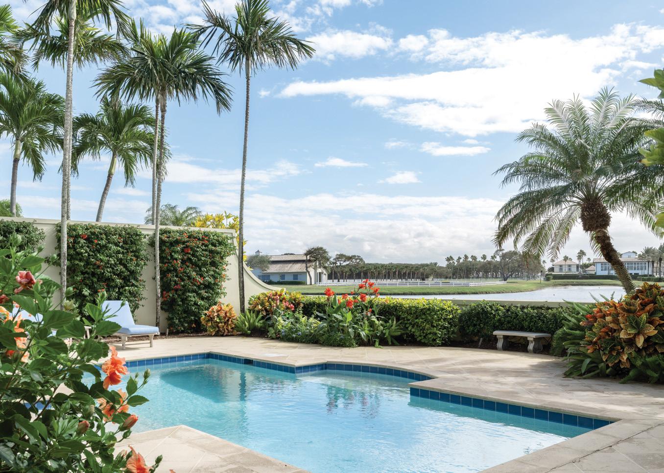 Filled with natural light and featuring open flowing interiors as well as thoughtfully designed outdoor spaces, this gracious four-bedroom home with classical millwork details enjoys sweeping views over Windsor’s Equestrian lake and the Village. The airy entry foyer with soaring 10-foot ceilings frames a first picturesque glimpse of these views, which also can be enjoyed from landscaped outdoor spaces for living, dining and entertaining. The central courtyard offers a more private setting for quiet visits and conversation. Mature landscaping that includes lady palms, Christmas palms, bougainvillea and giant birds of paradise is lush and colorful. Offered for $4,500,000.