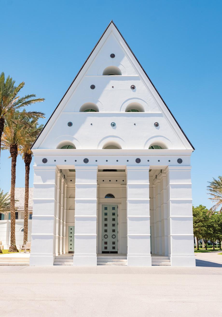 Making reference to Windsor’s Anglo-Caribbean architecture, Krier used pillars, a steep roofline and repetitive half-moon cutouts to dramatic effect to create an awe-inspiring building that serves as both a place of worship and a space for the community to gather. Ensuring comfort, the Town Hall boasts an airy and voluminous interior with multiple doors that allow cross-breezes and natural light to filter through the arched windows.