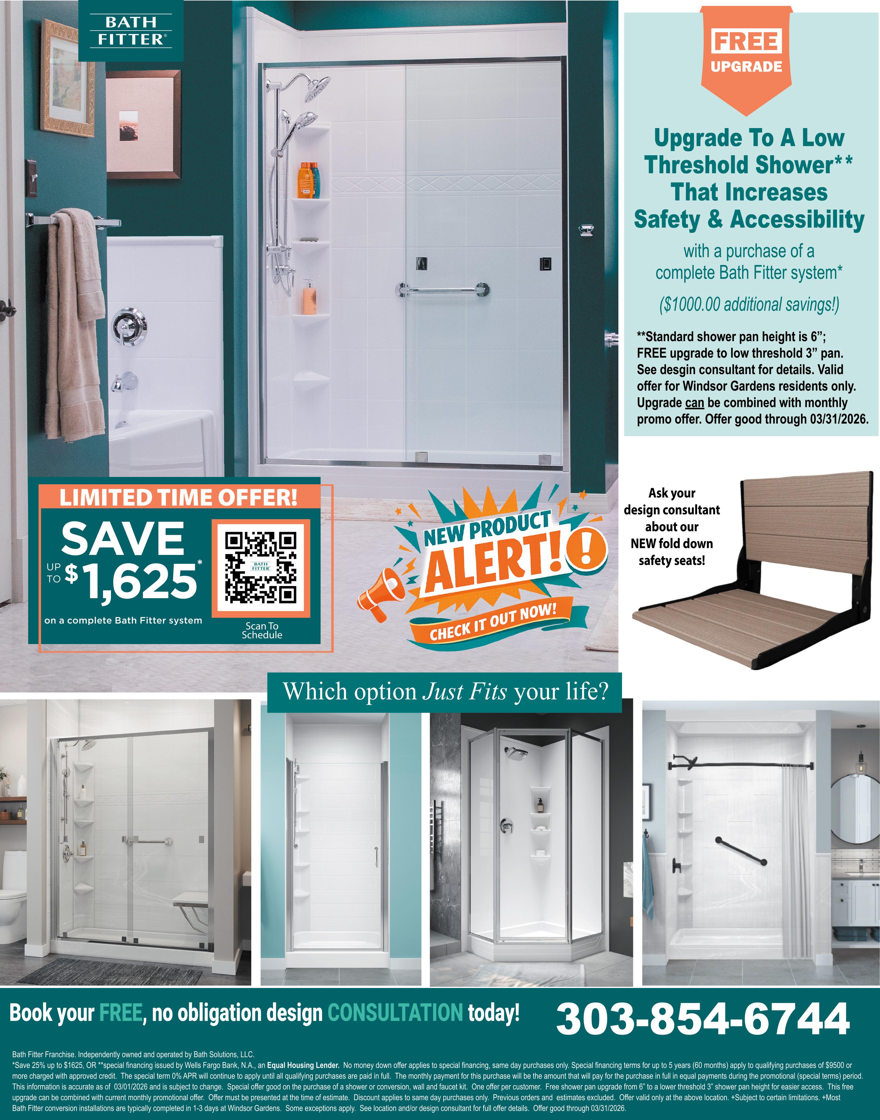 See our Ad-Back Page of Windsor Life www.tourwindsorgardens.com 303-941-9436