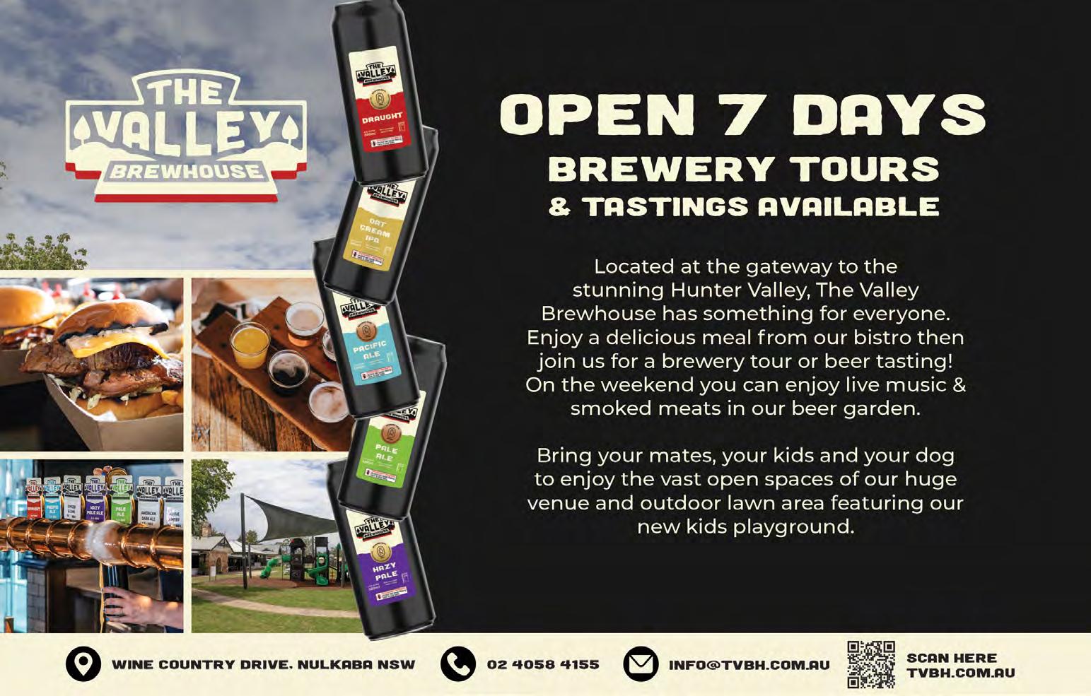 Breakfast, Lunch + Dinner – 7 days. For more information and bookings, visit www.huntervalley.com.au or call (02) 4998 7777.