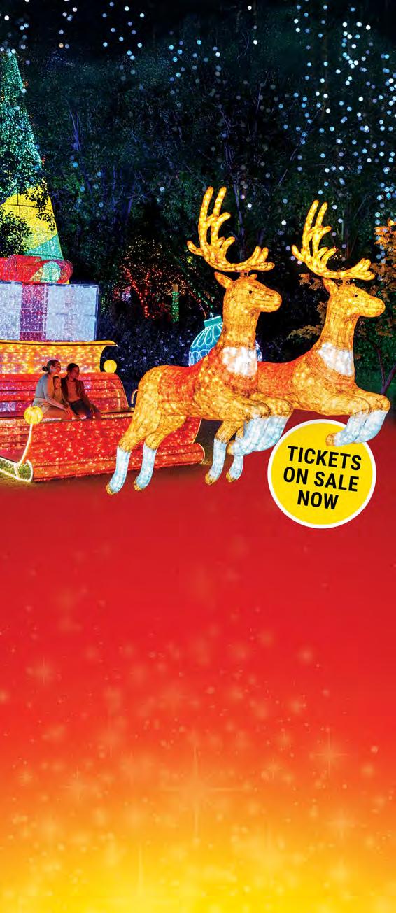 ▲ Experience enchanting displays of millions of sparkling lights across five hectares of gardens. This much-loved family event brings the spirit of Christmas to children (and adults) of all ages, creating lasting memories as you stroll through magical themed light displays. Plus, the whole family will enjoy the amazing rides, delicious food, roaming entertainment and the famous fireworks display on New Year’s Eve. A world of wonder awaits; secure your tickets by visiting www.huntervalleygardens.com.au.