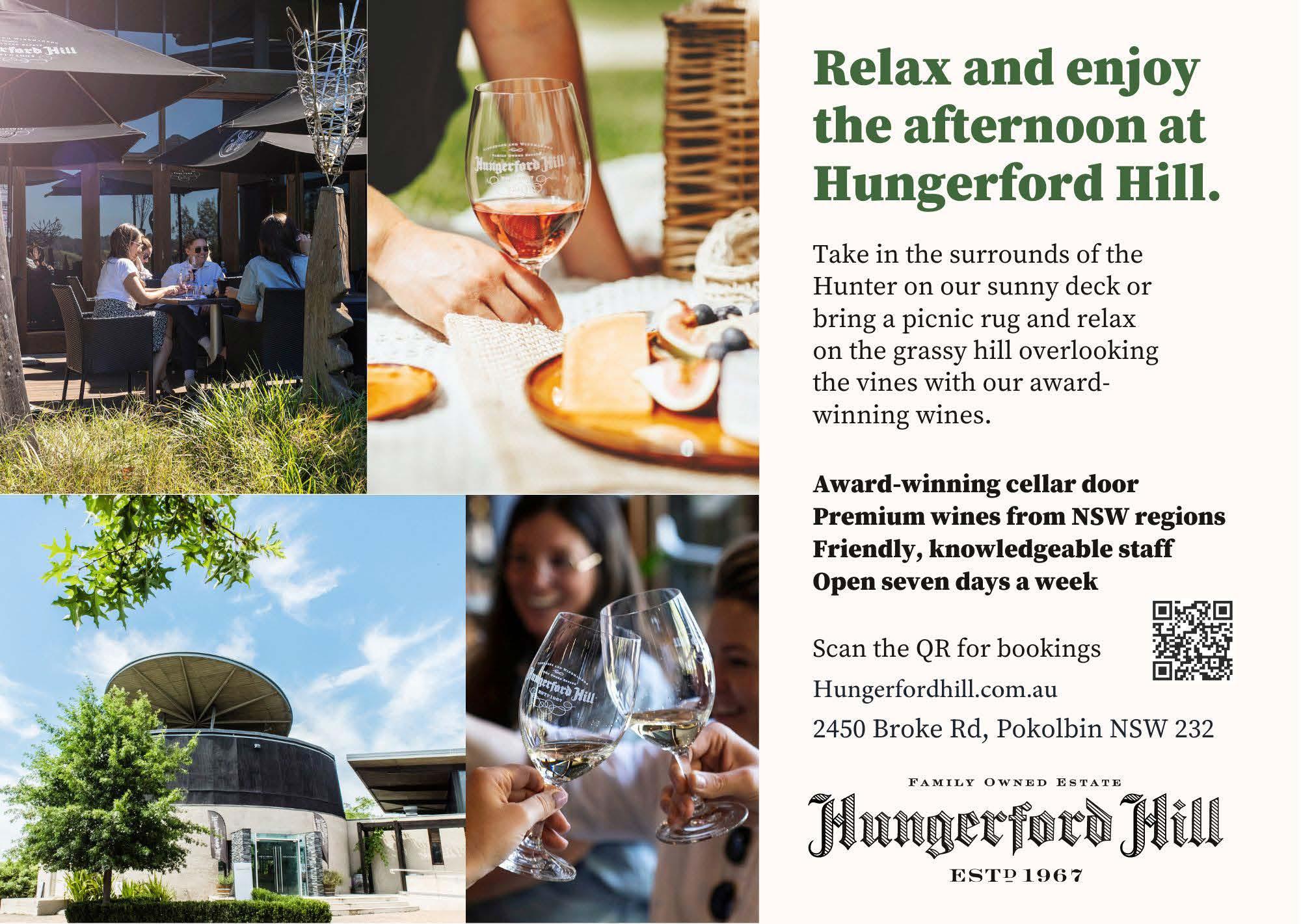 PH 4998 7776 OPEN Lunch Fri, Sat & Sun, Dinner Fri & Sat E info@huntersquarter.com.au W www.huntersquarter.com.au